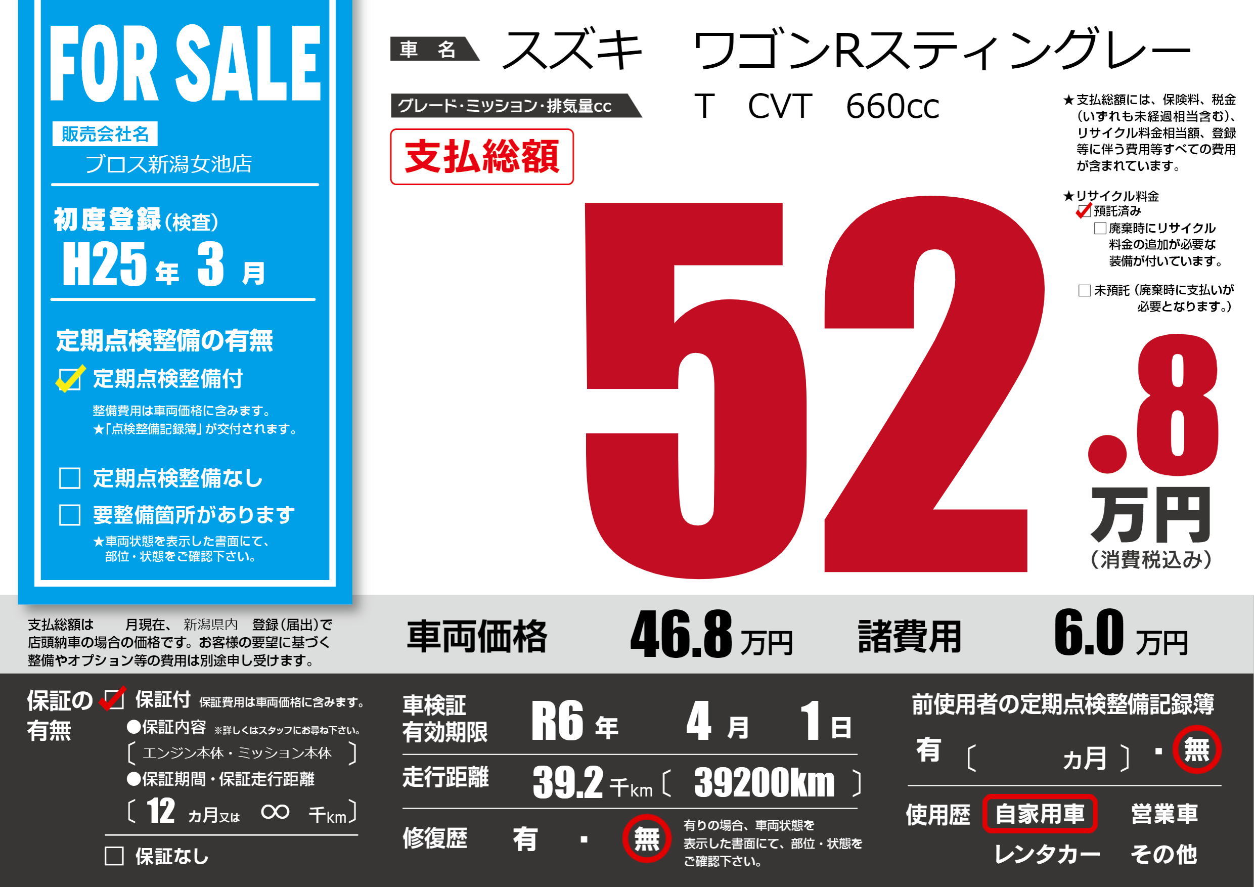 なし | 車検制限 | R6年4月1月 |