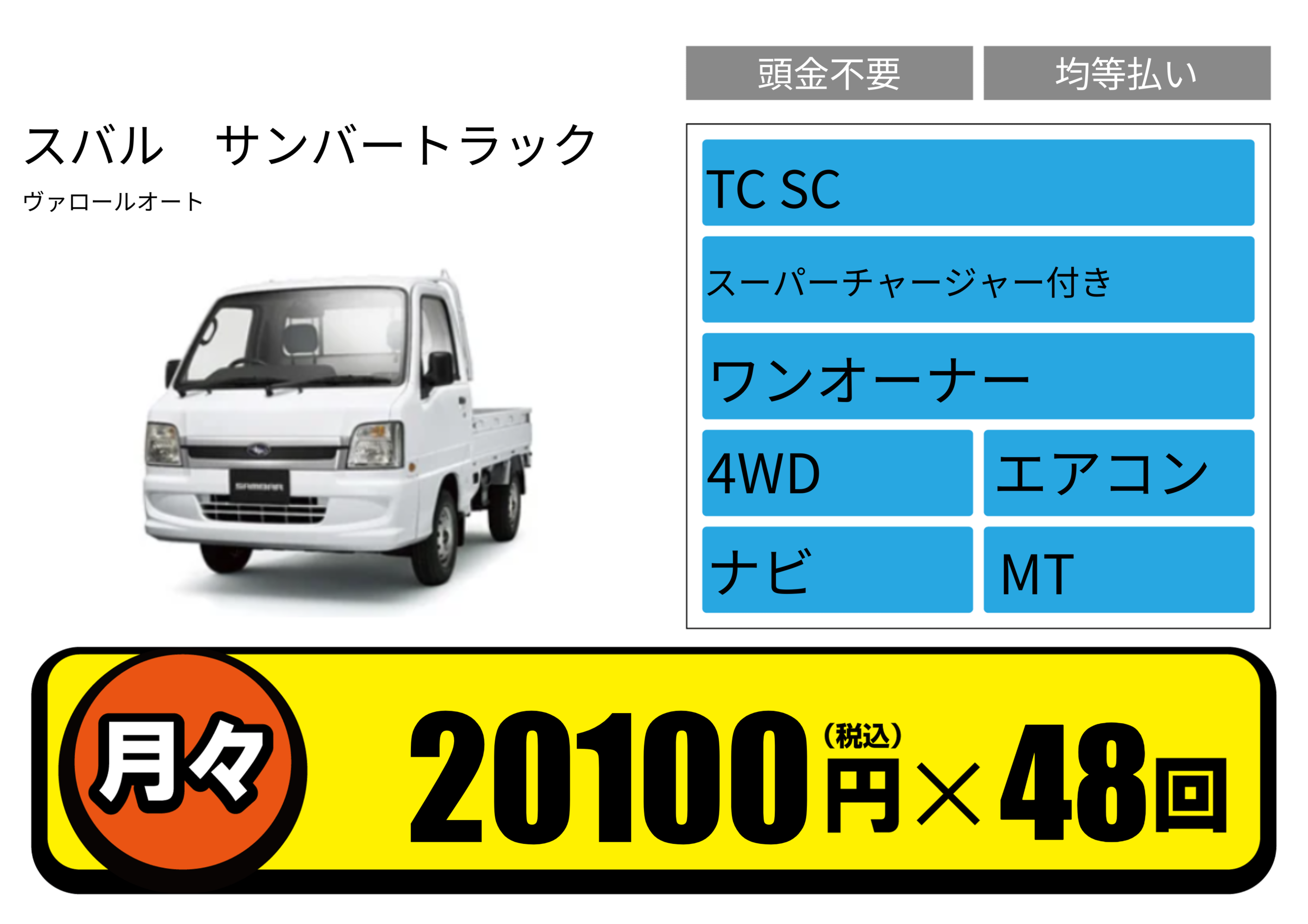 | 車名 | スバル サンバートラック | グレード ミッション 排気量 |