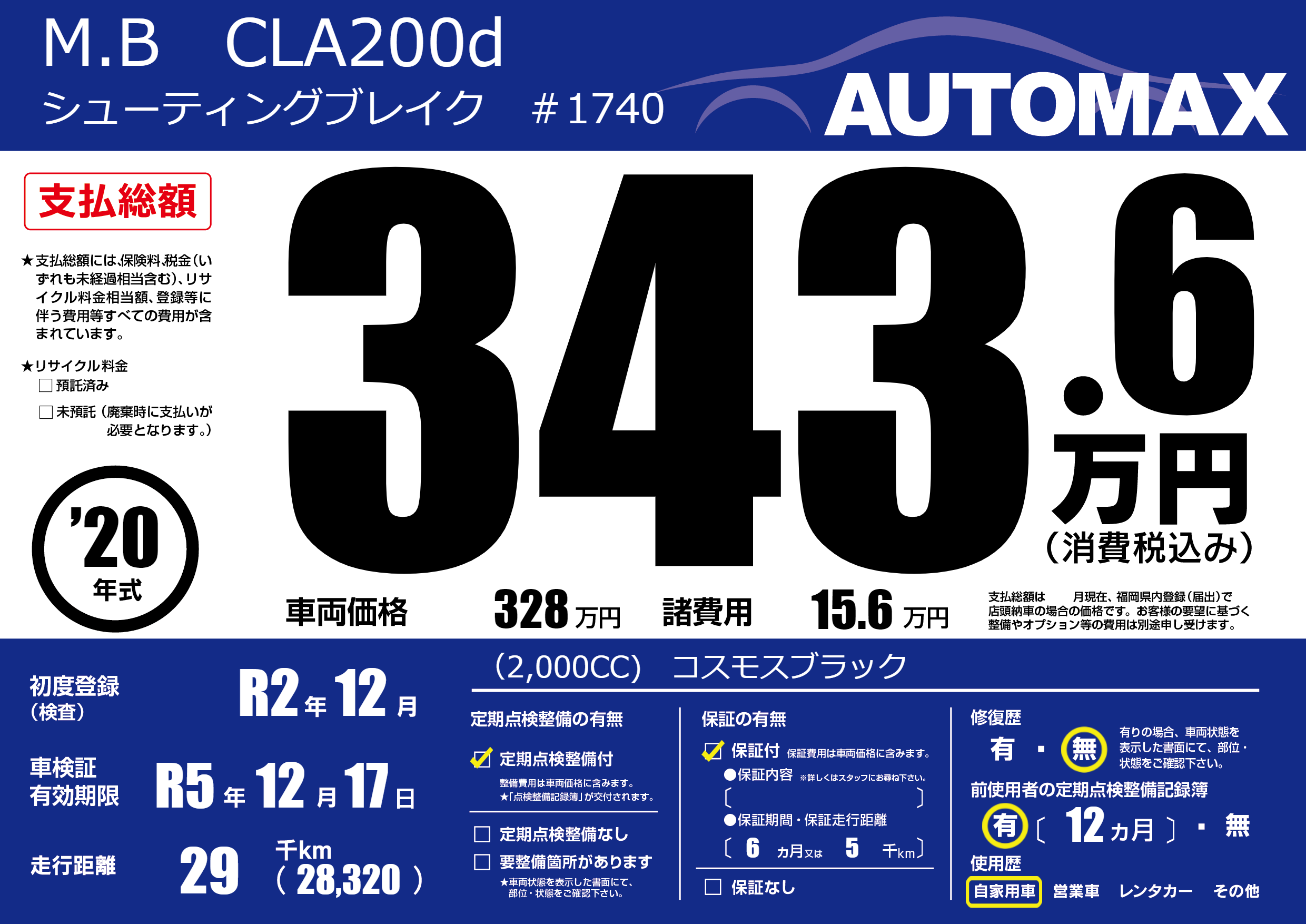 | 車検制限 | R5年 12月 17日 | ||