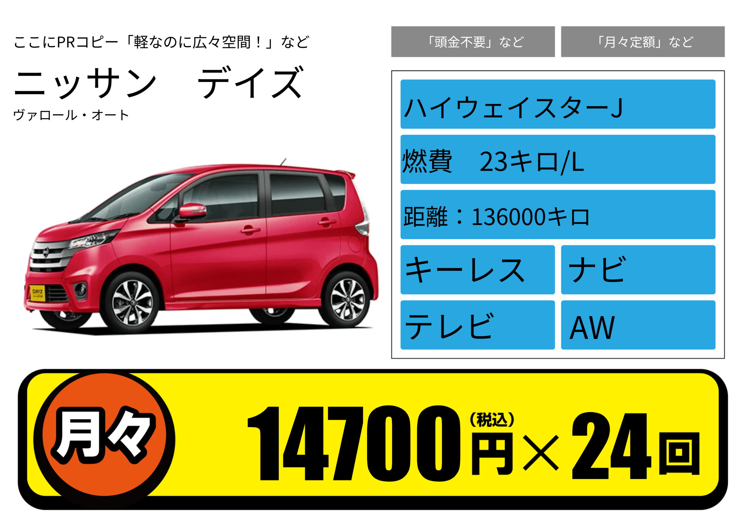 | 車名 | ニッサン デイズ | グレード ミッション 排気量 |