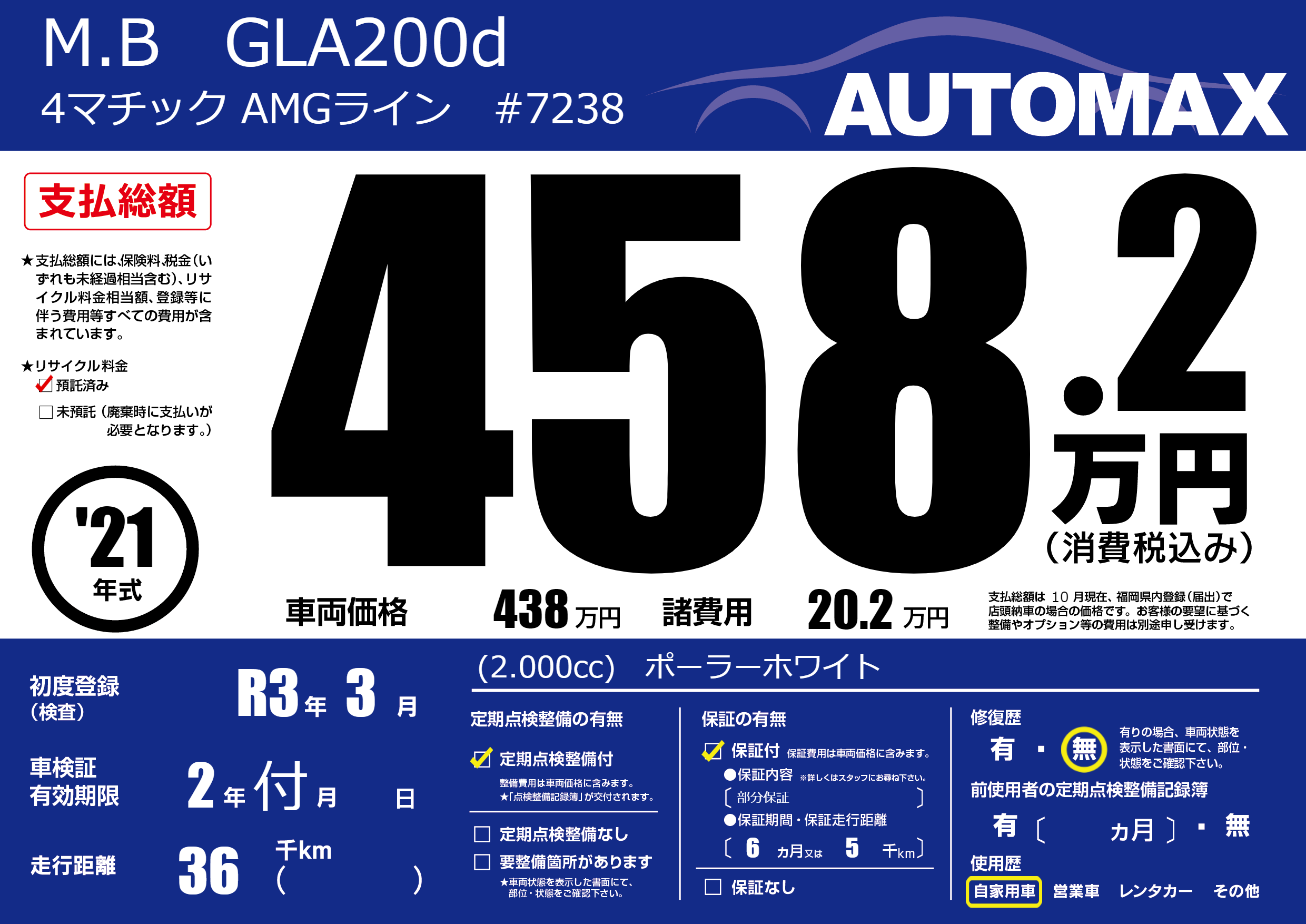 なし | 車検制限 | 2年付月---月 |