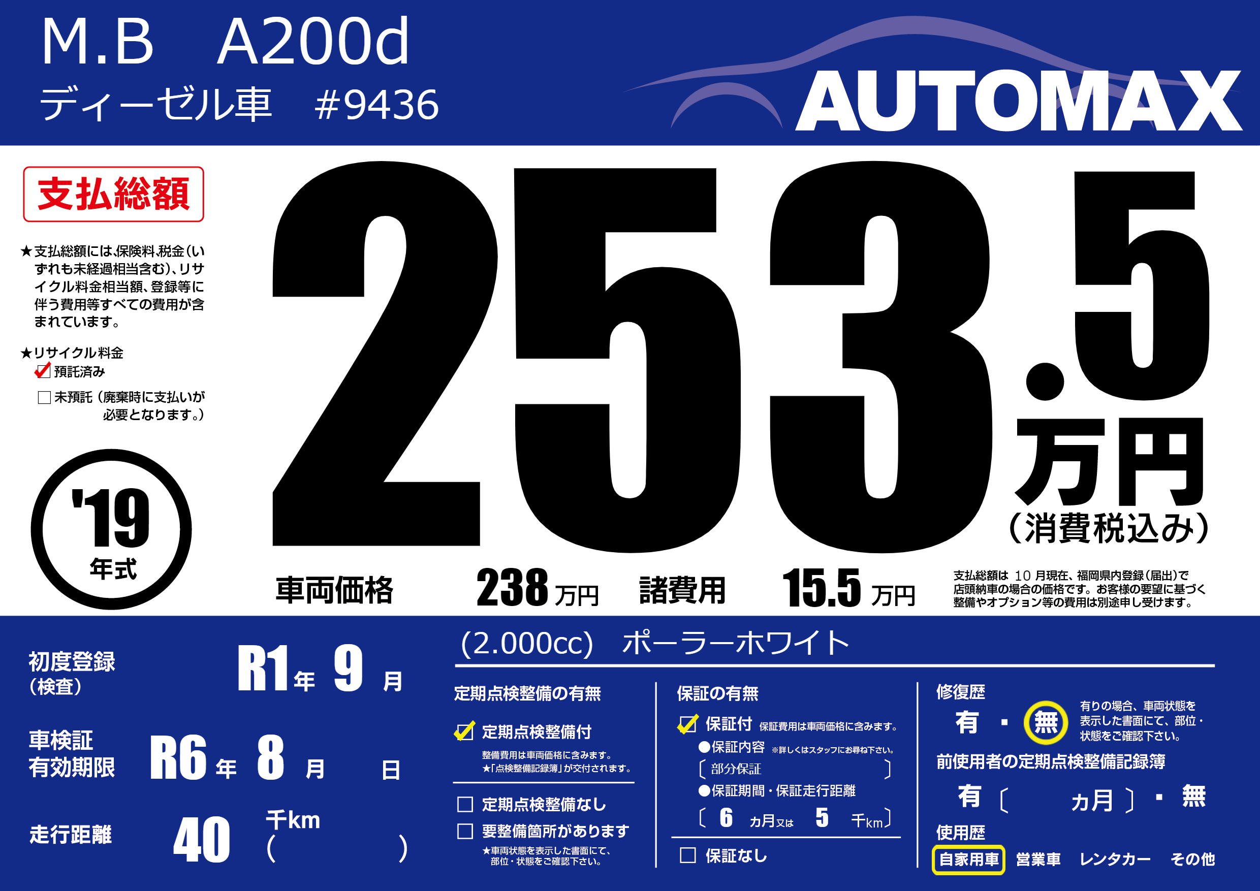 | 車検制限 | R6年 8月 - 日 | ||