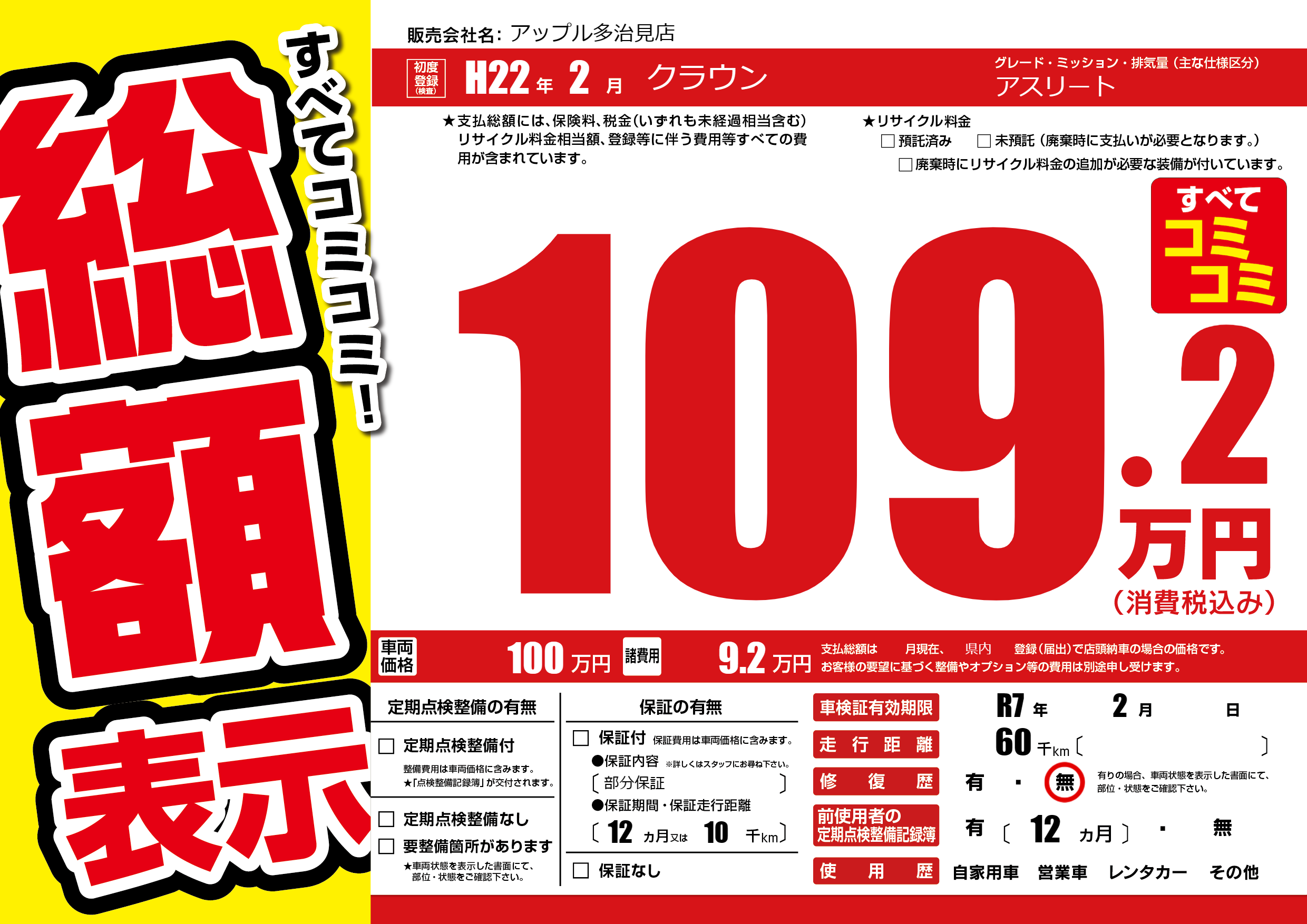 | 車名 | クラウン | グレード ミッション 排気量 |