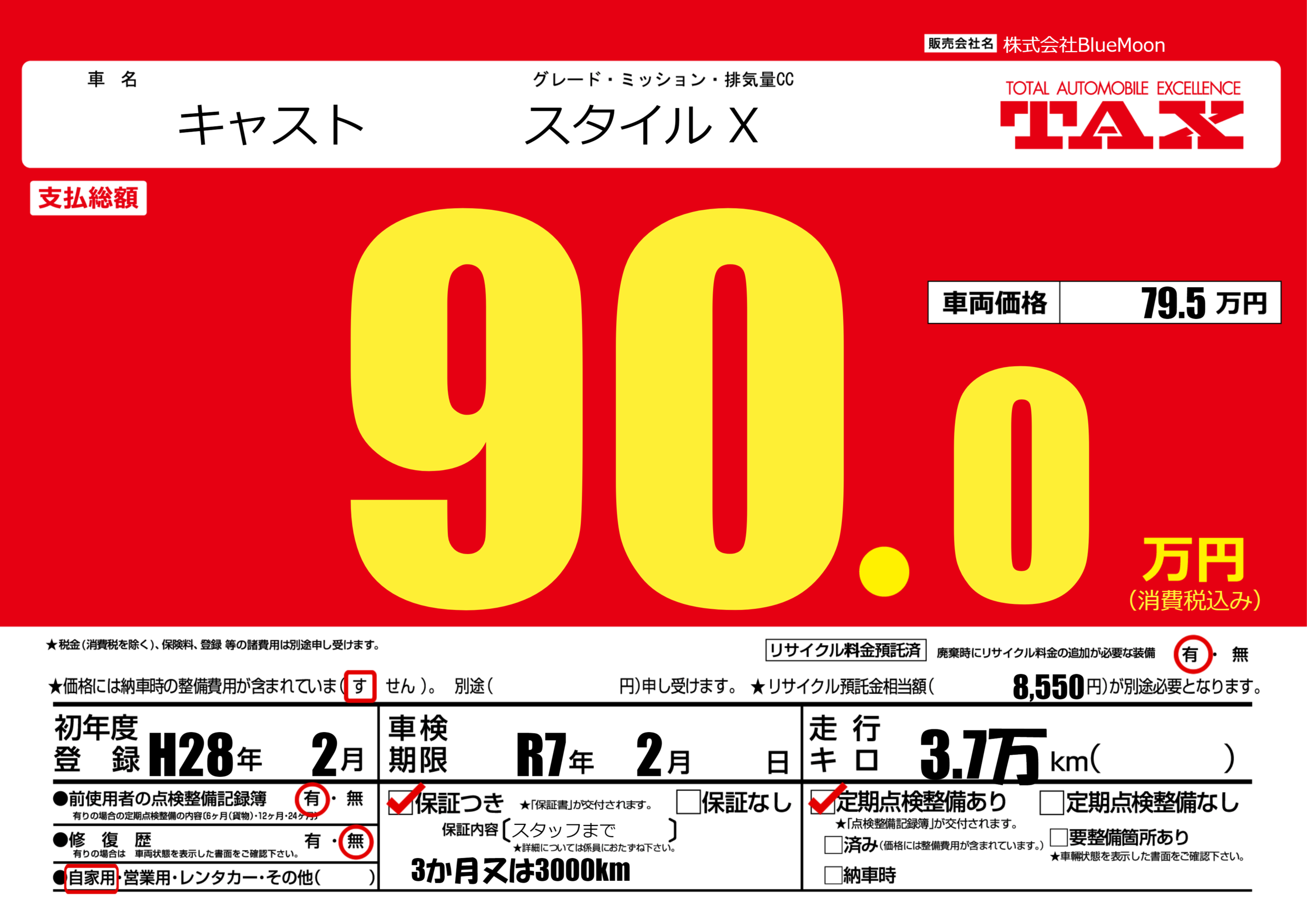 保証付き 保証内容(スタッフまで) ---ヶ月または()千kmまで |