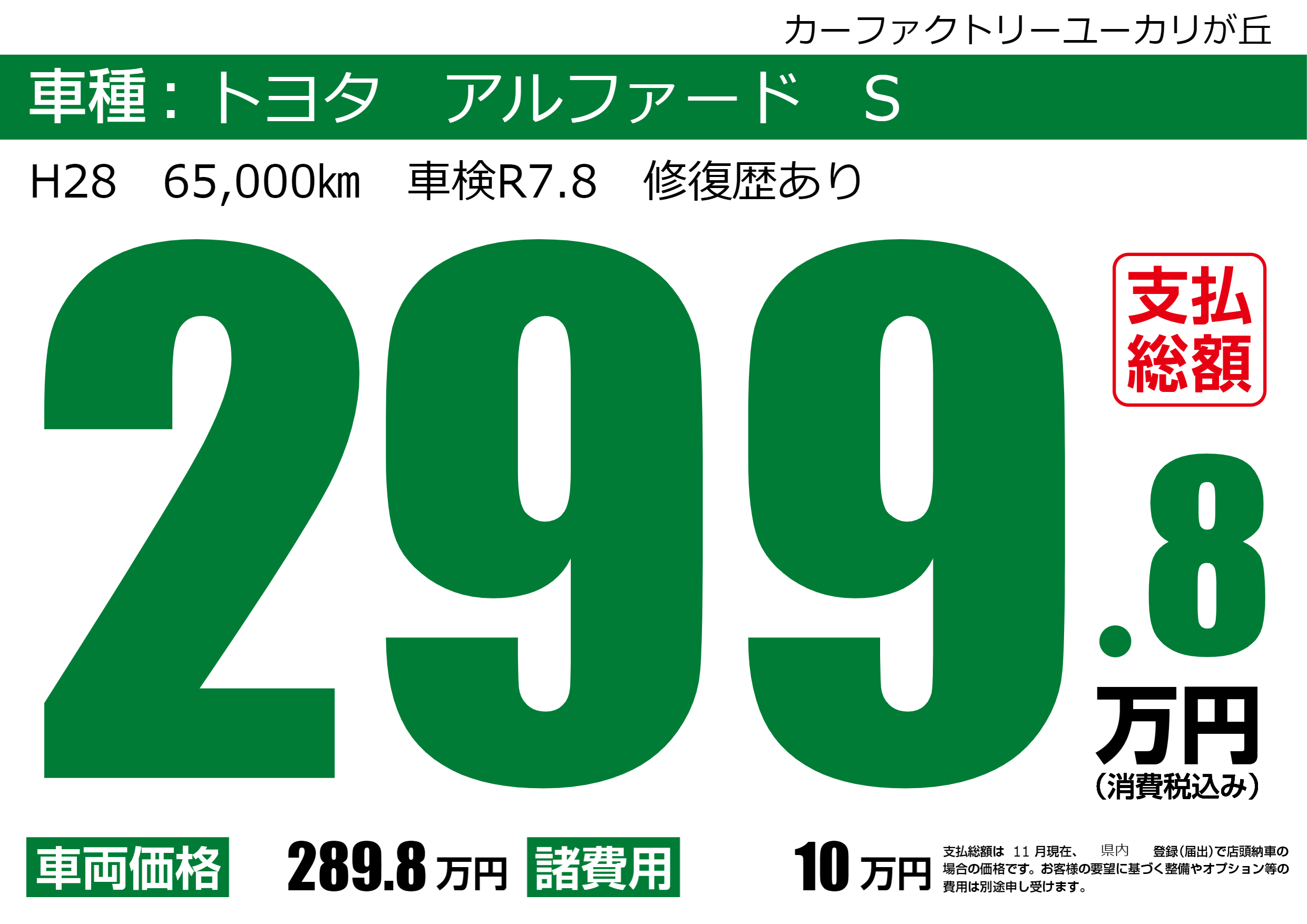 | 車名 | トヨタ アルファード S | グレード ミッション 排気量 |