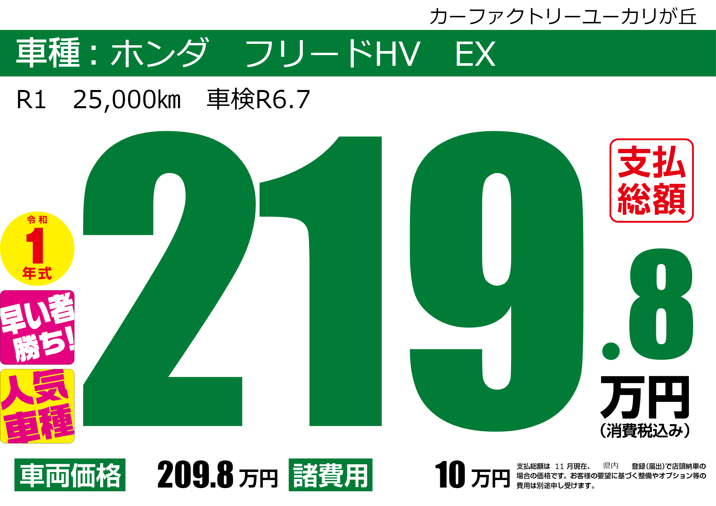 | 車名 | ホンダ フリードHV EX | グレード ミッション 排気量 |