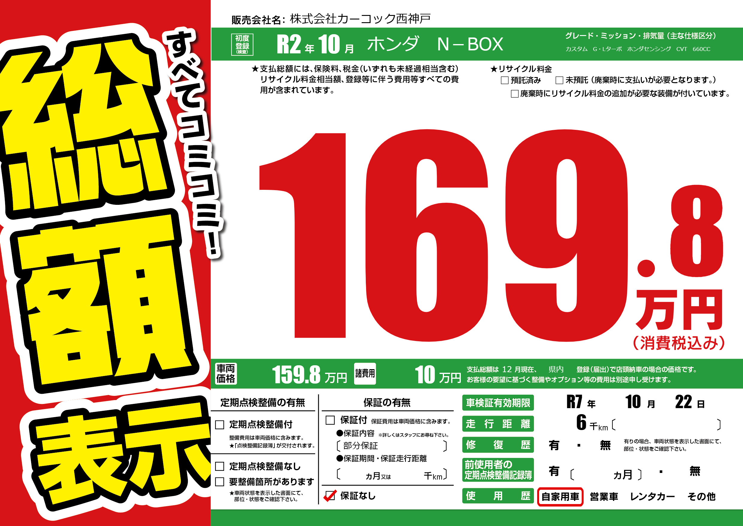 保証なし 保証内容(部分保証) ---ヶ月または()千kmまで |