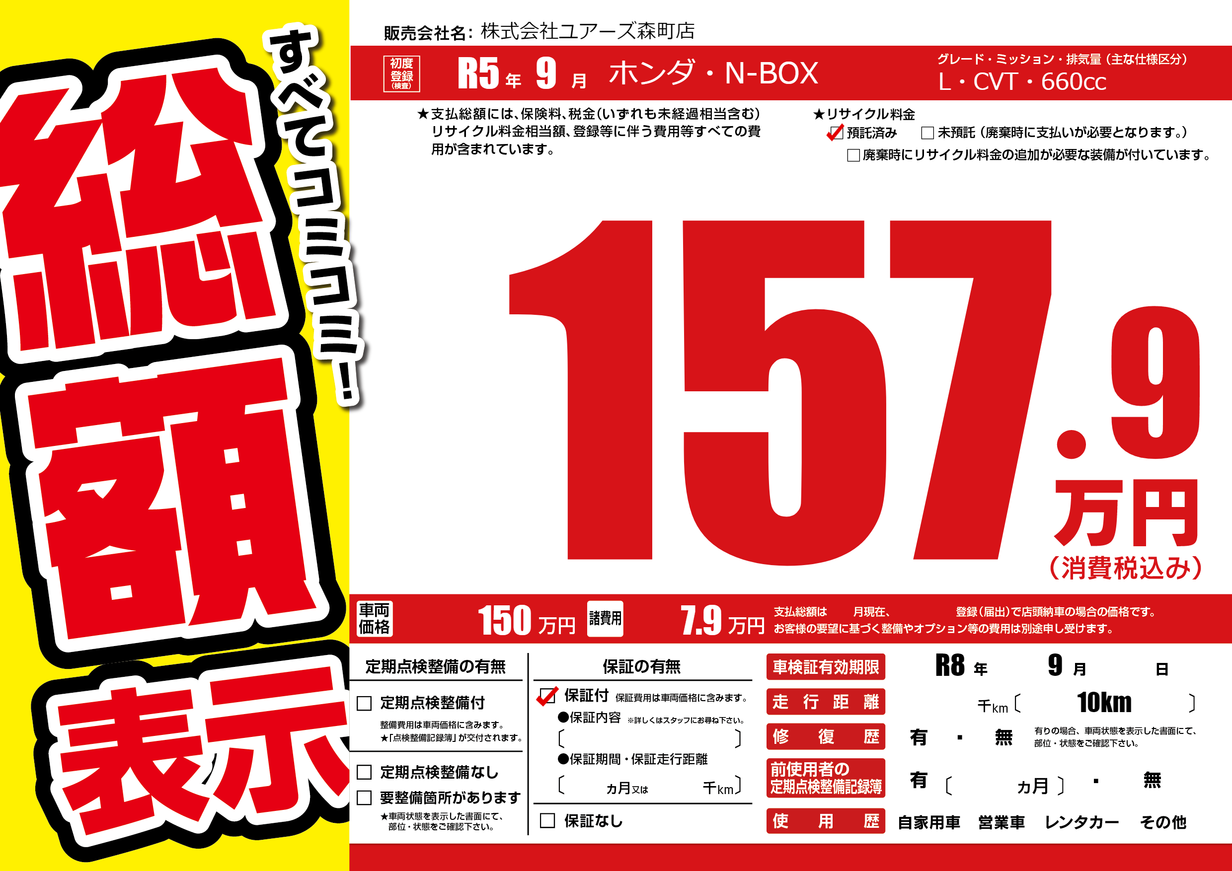 | 走行キロ | - | 初年度登録 | R5年9月 |
