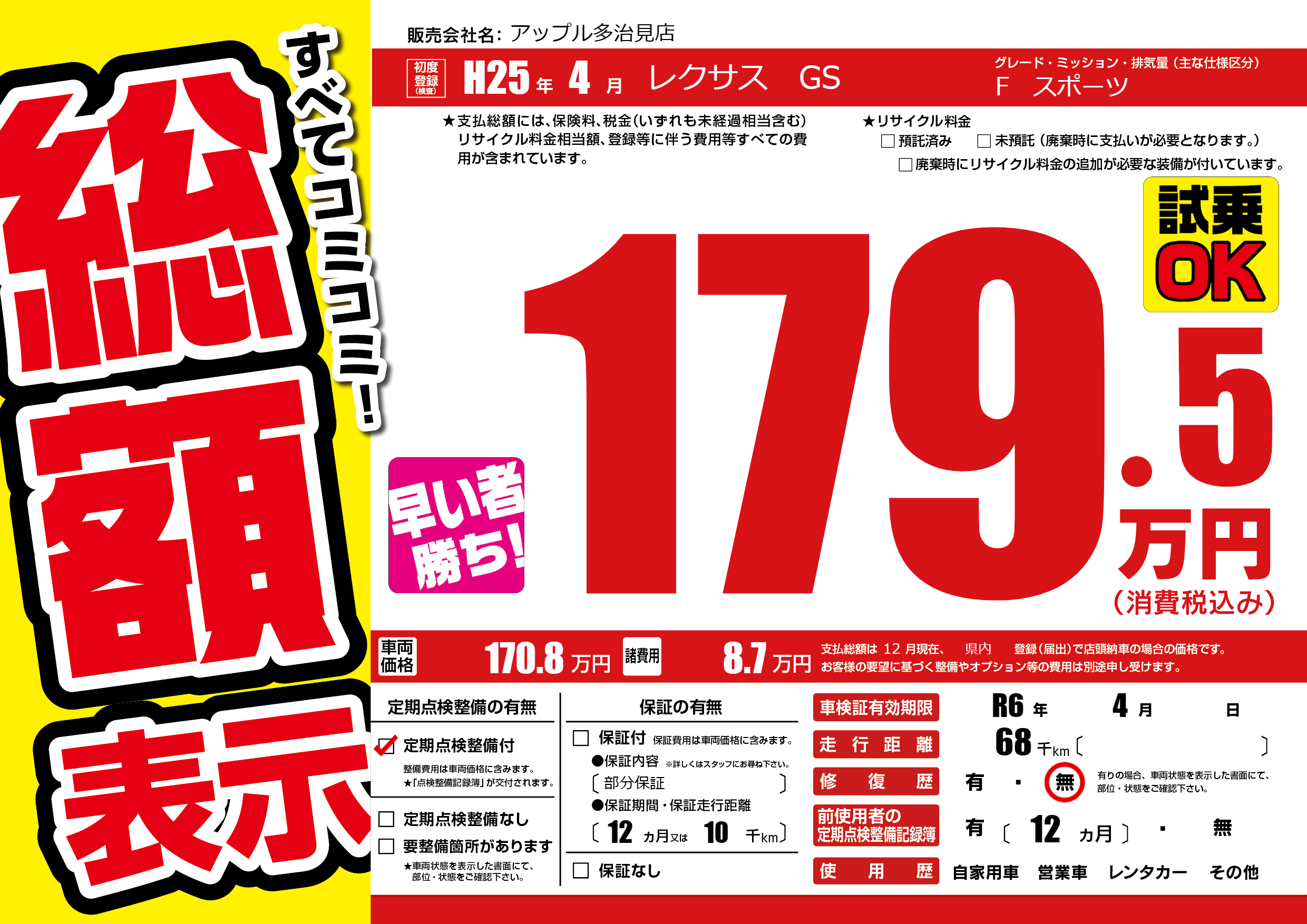 | 車検制限 | R6年 4月 - 日 | ||