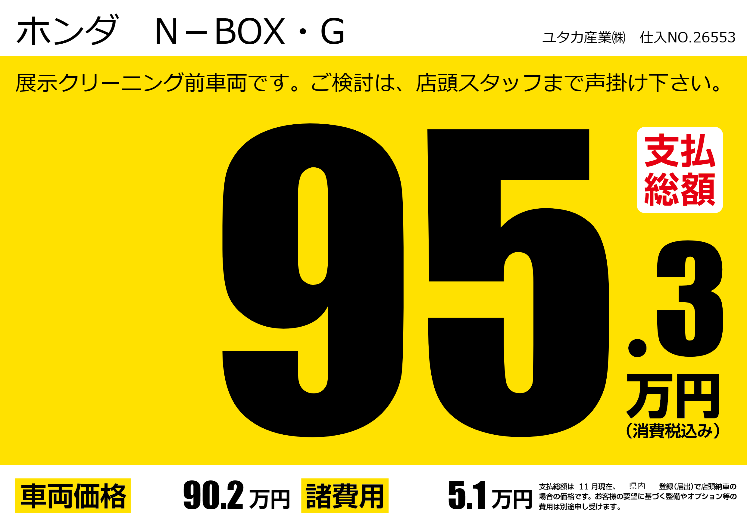 | 車名 | ホンダ N-BOX・G | グレード ミッション 排気量 |