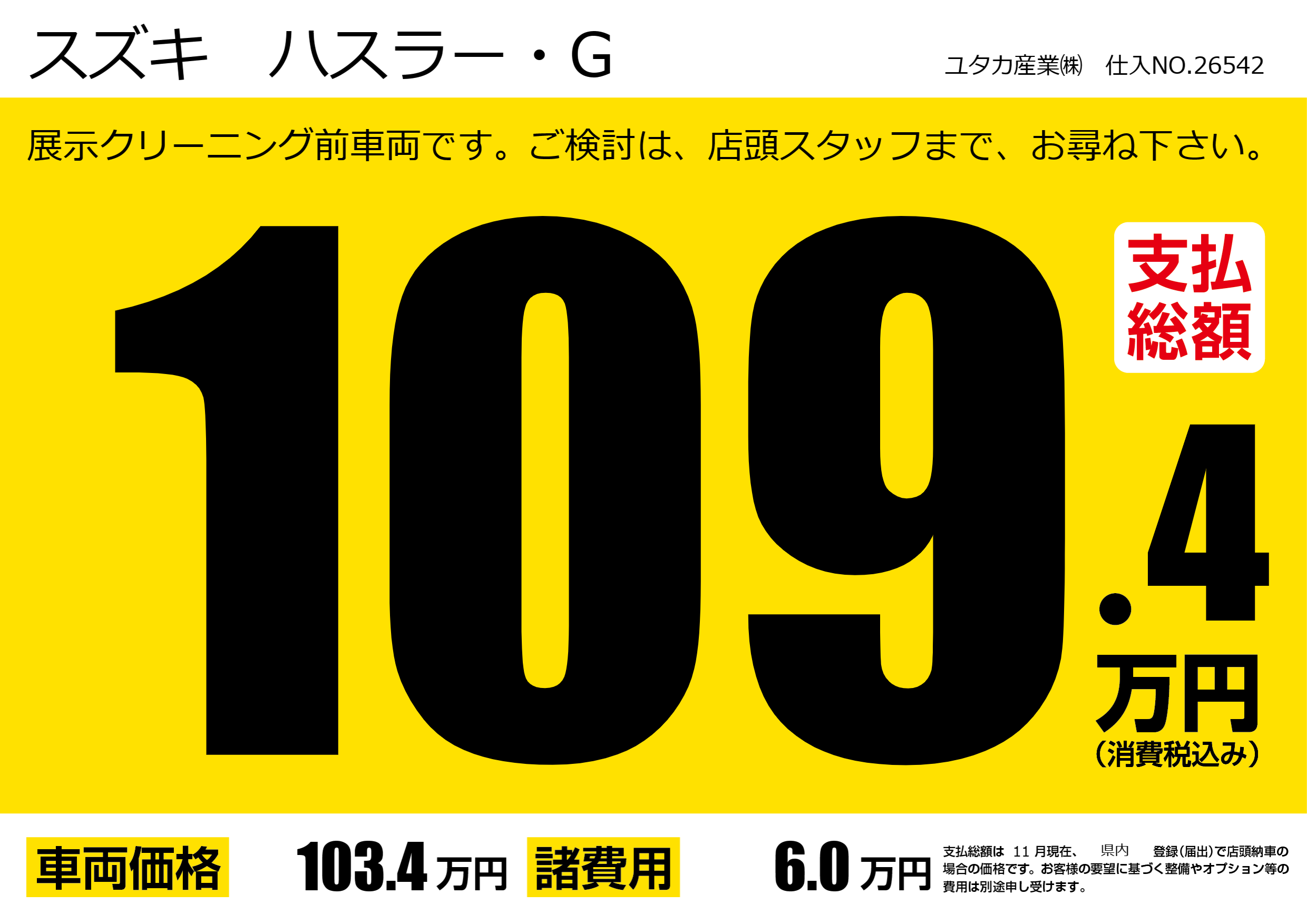 | 車名 | スズキ ハスラー・G | グレード ミッション 排気量 |