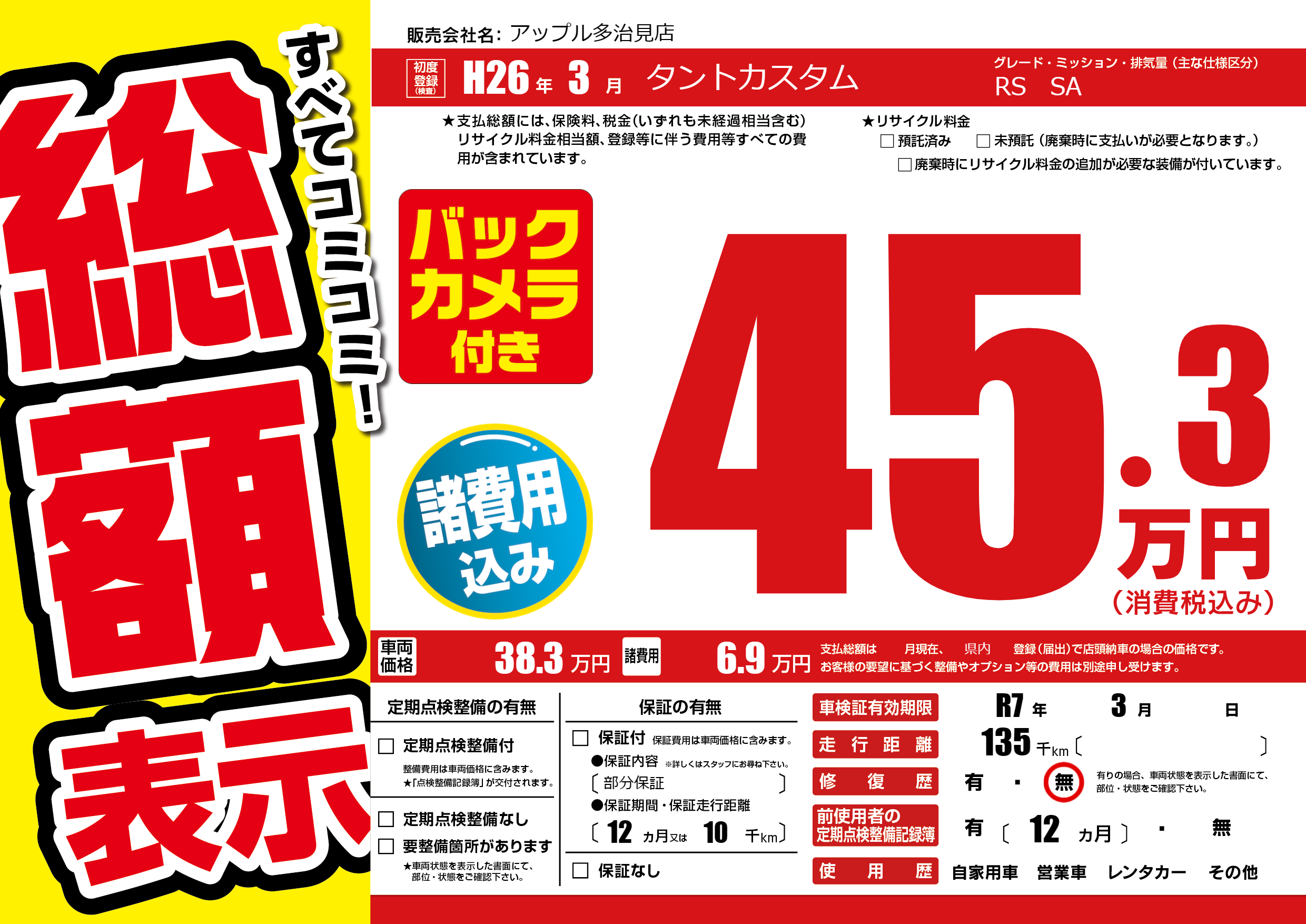 | 車検制限 | R7年 3月 - 日 | ||