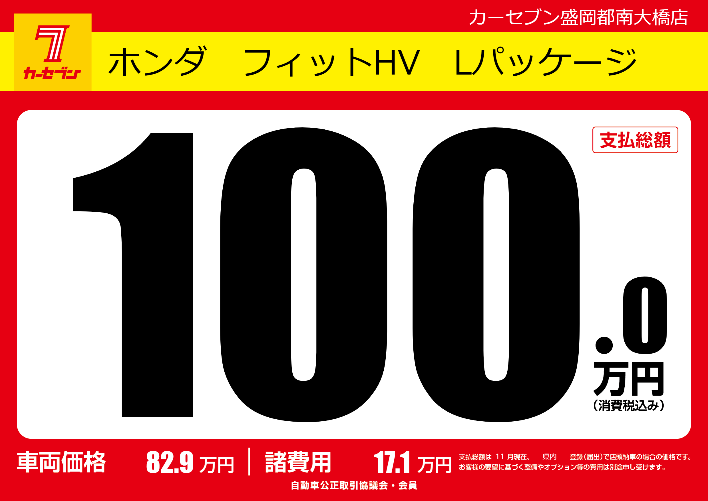 | 車名 | ホンダ フィットHV Lパッケージ | グレード ミッション 排気量 |