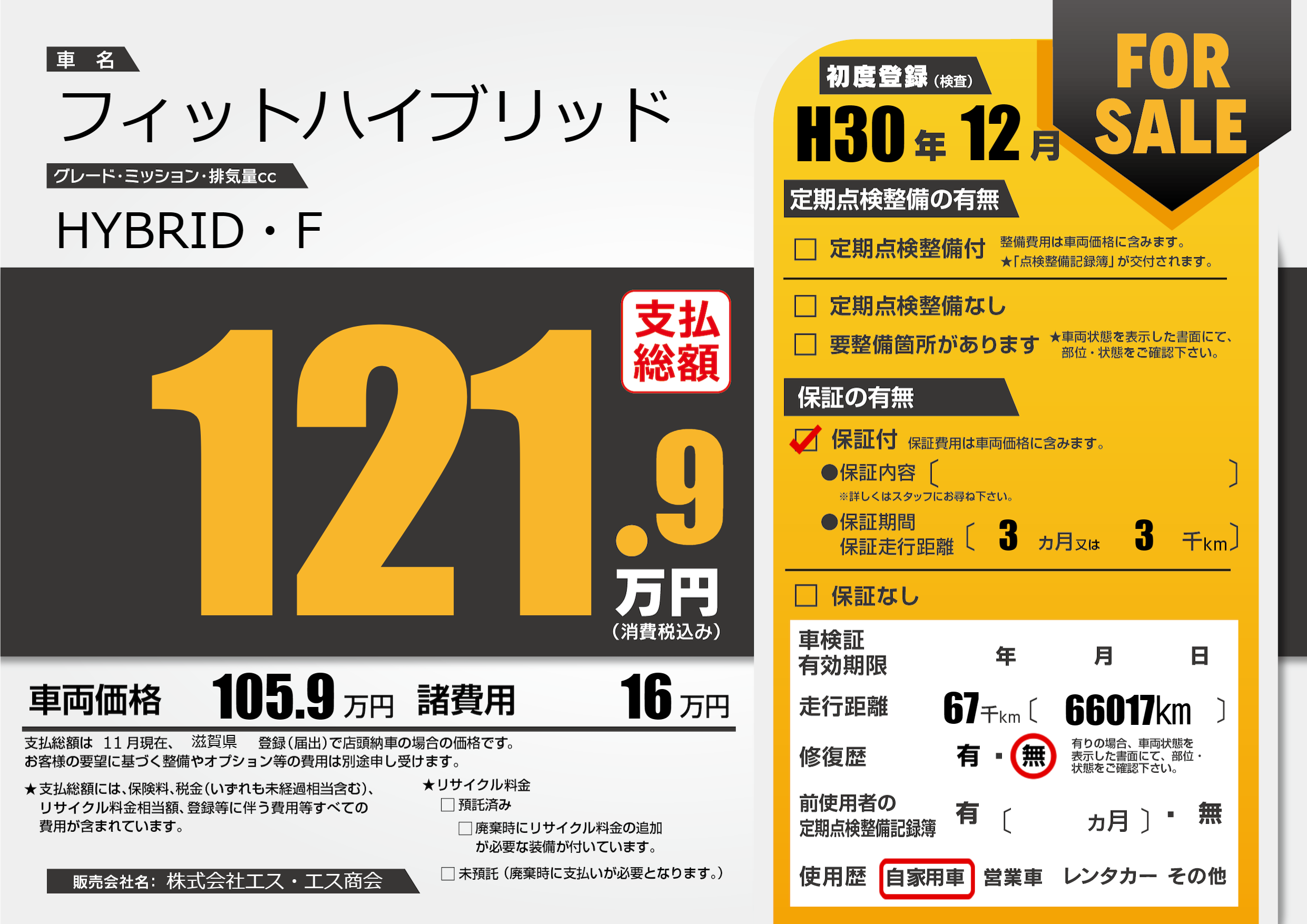 | 車名 | フィットハイブリッド | グレード ミッション 排気量 |