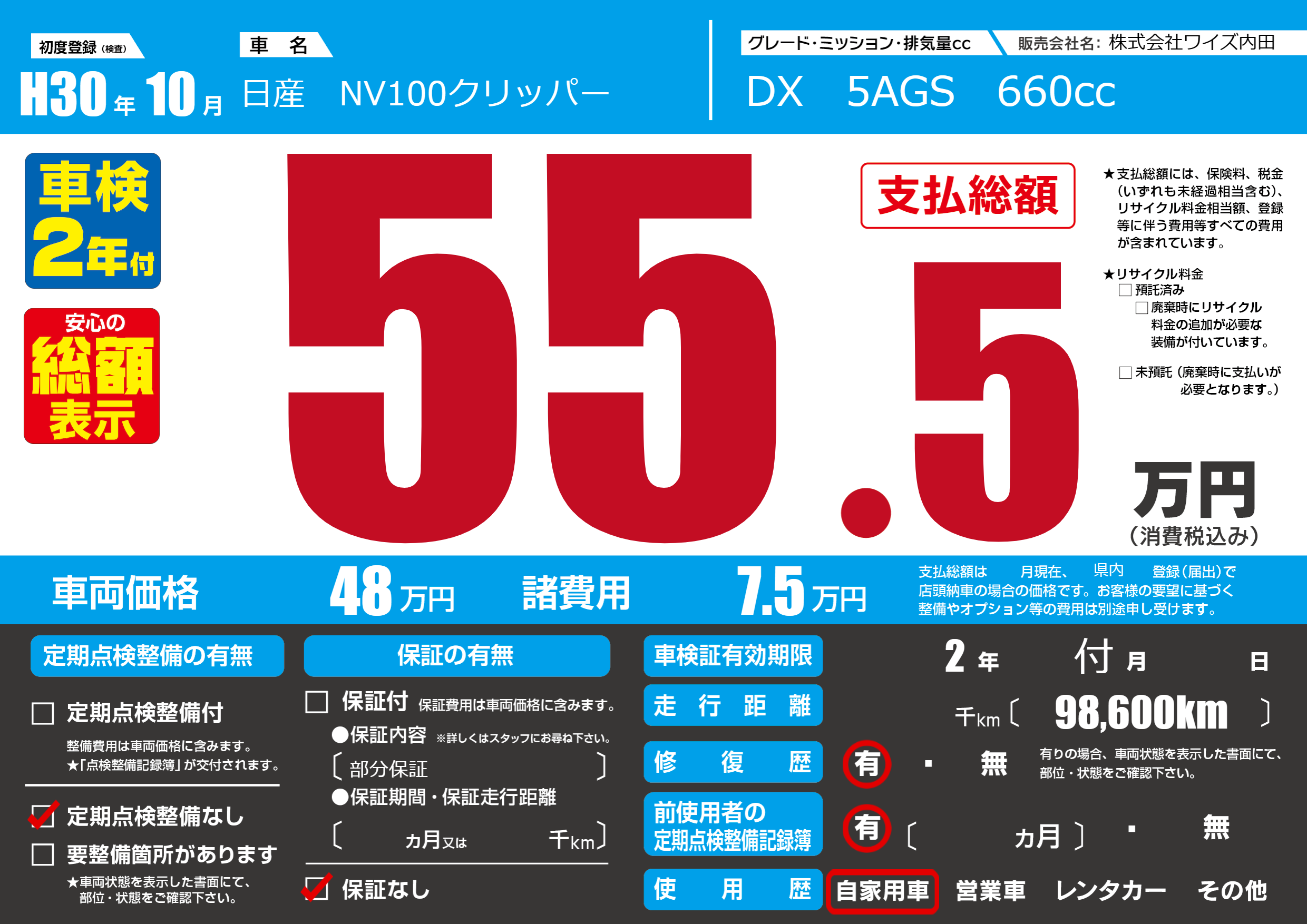 | 定期点検整備 | 定期点検整備なし | ||