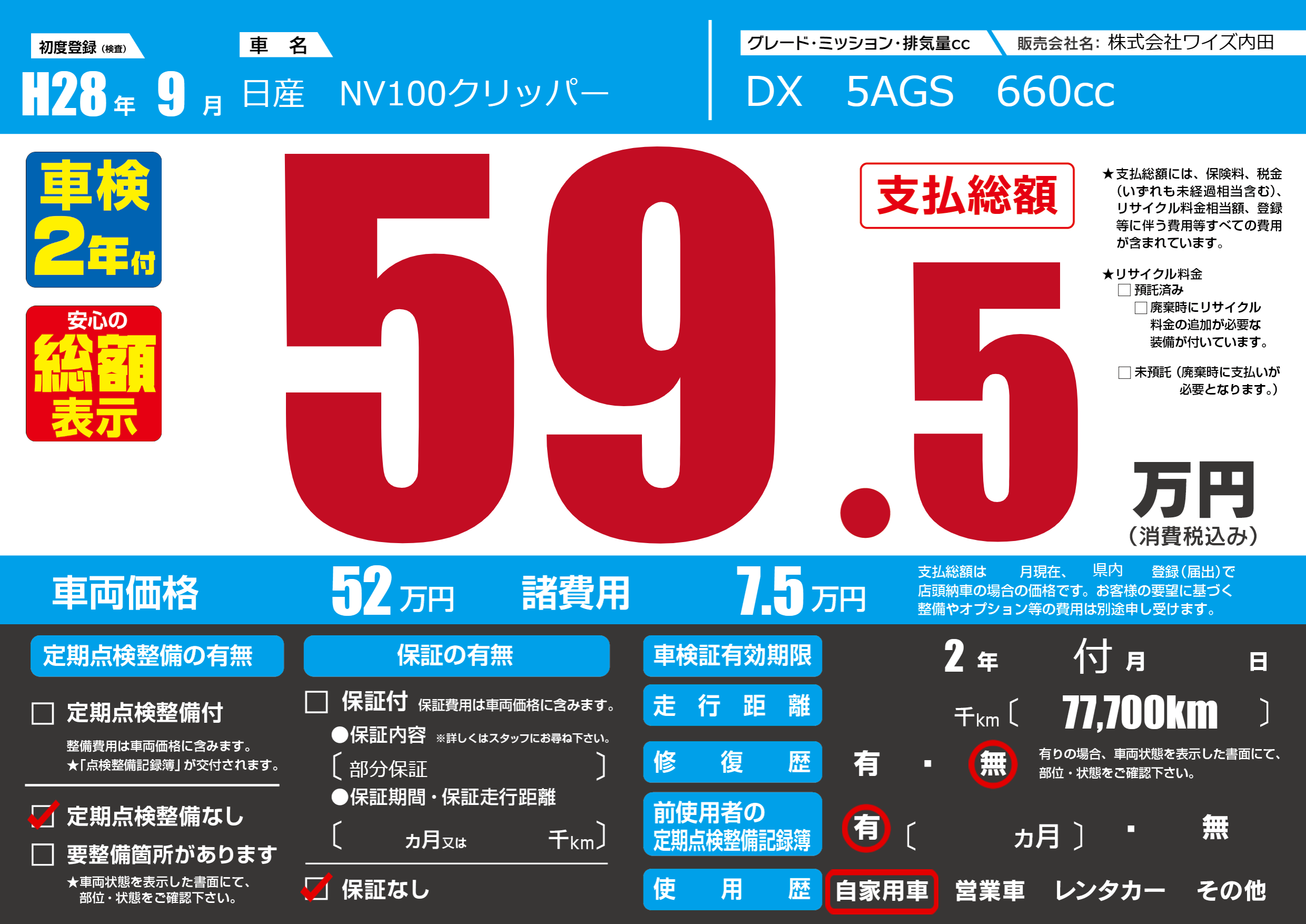 なし | 車検制限 | 2年付月---月 |
