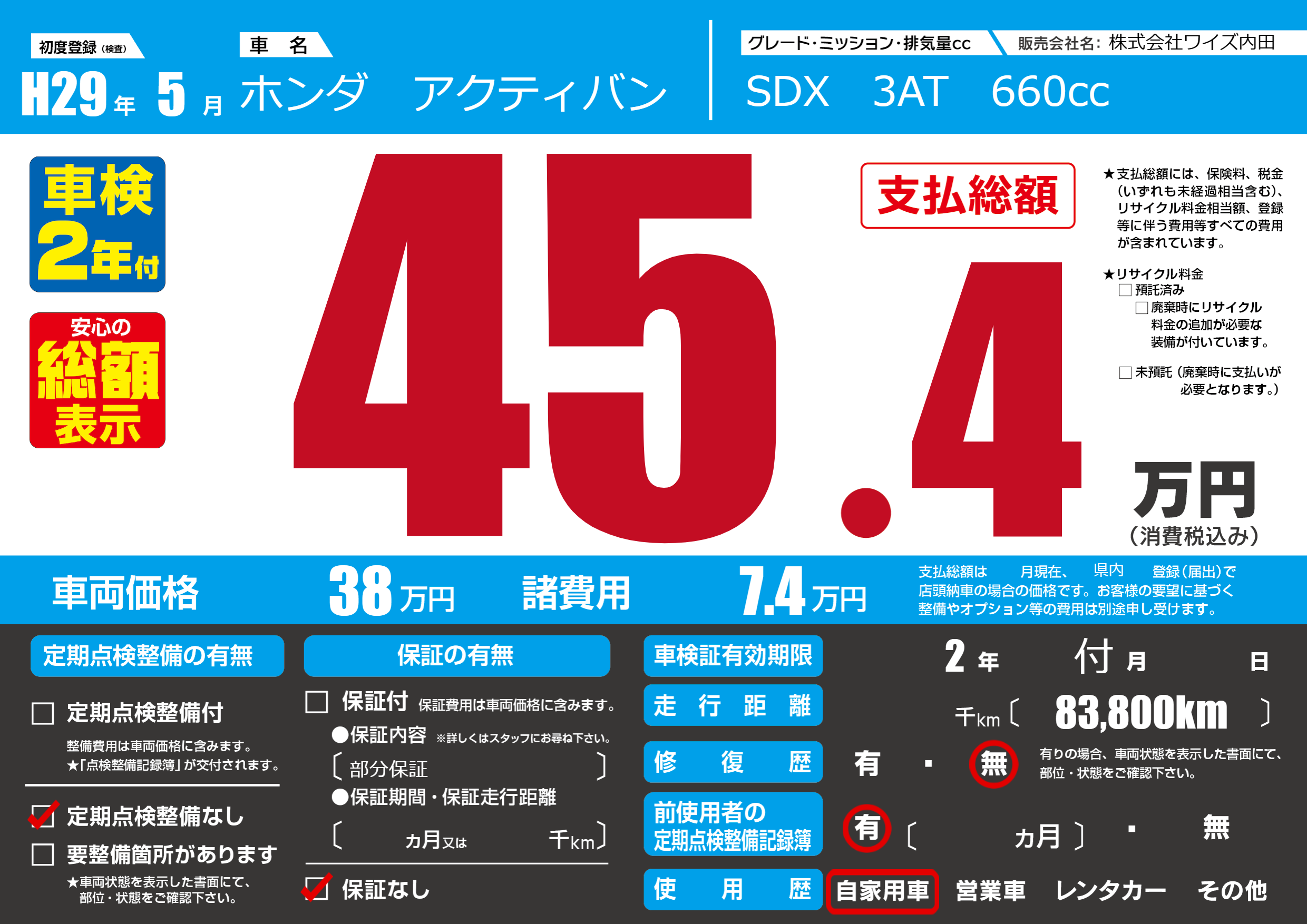 | 車名 | ホンダ アクティバン | グレード ミッション 排気量 |