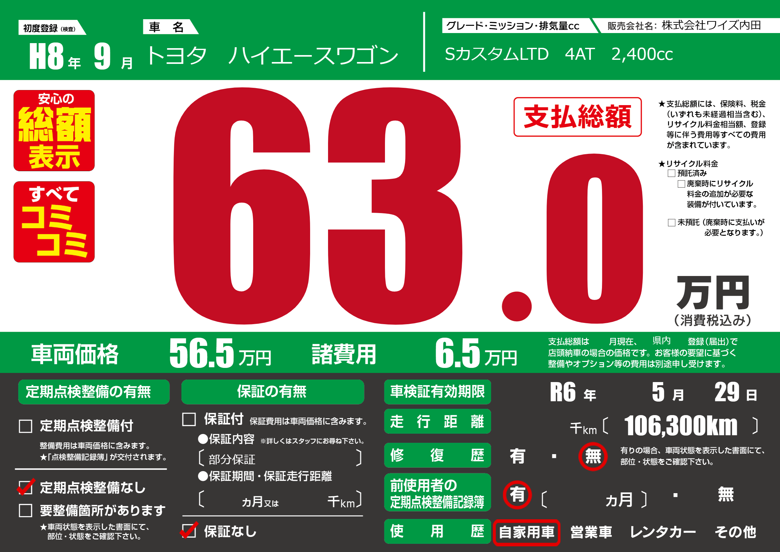 | 走行キロ | - | 初年度登録 | H8年9月 |