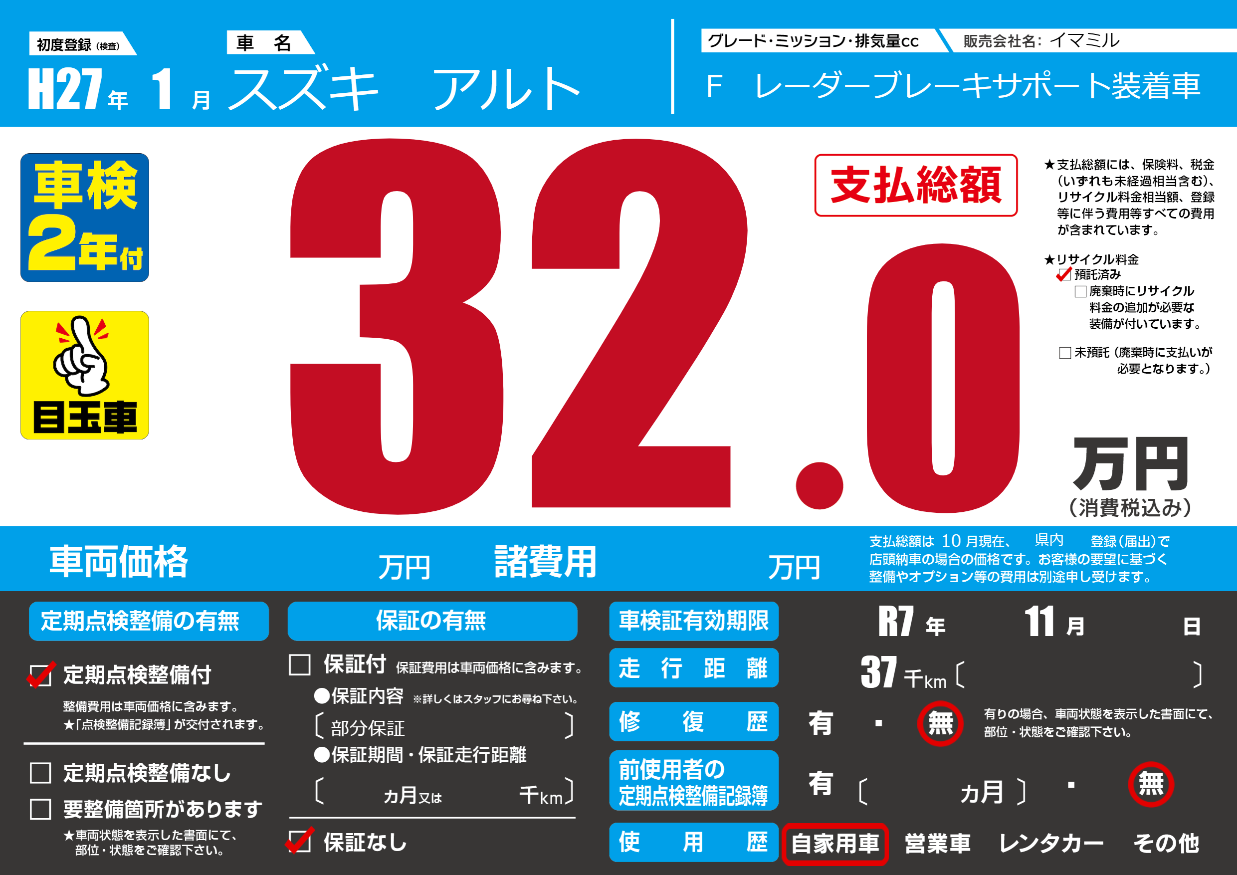 | 車検制限 | R7年 11月 - 日 | ||