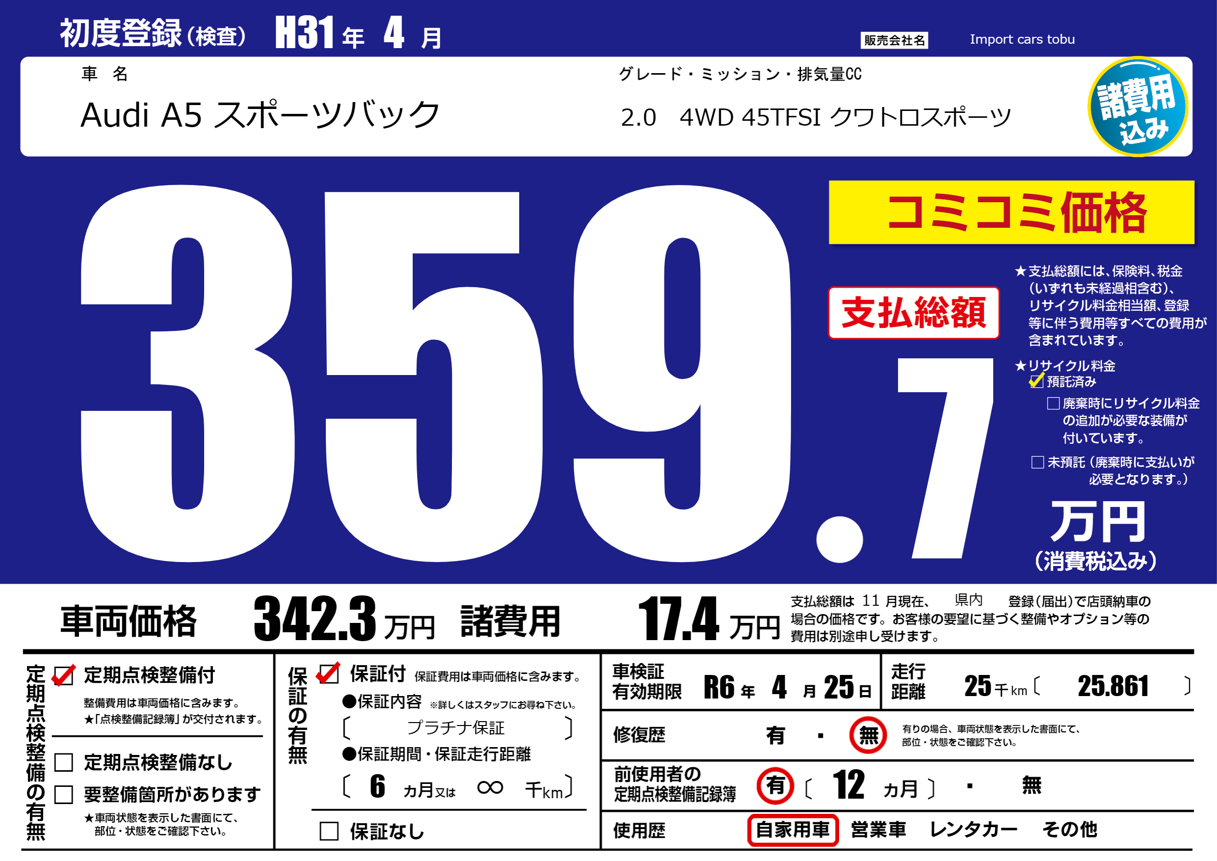 | 車検制限 | R6年 4月 25日 | ||