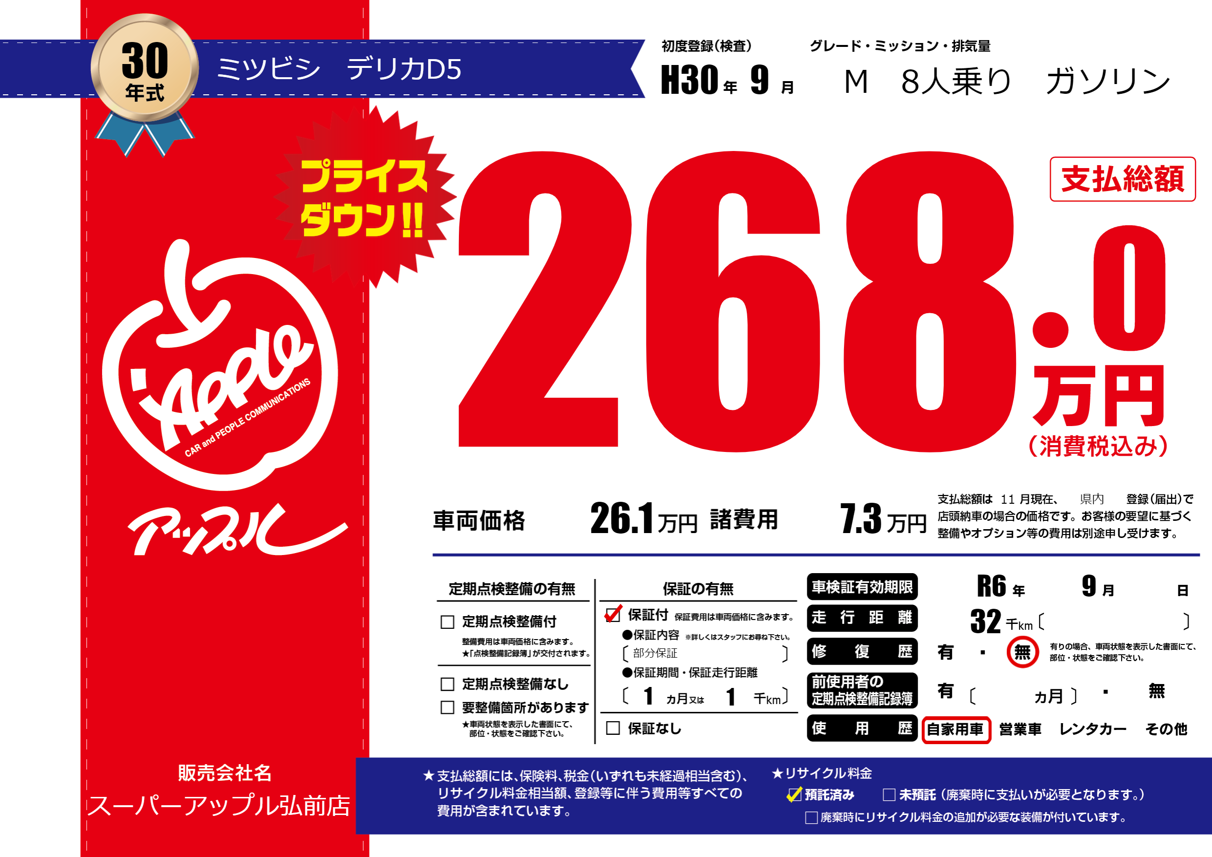 | 走行キロ | 3.2万km | 初年度登録 | H30年9月 |