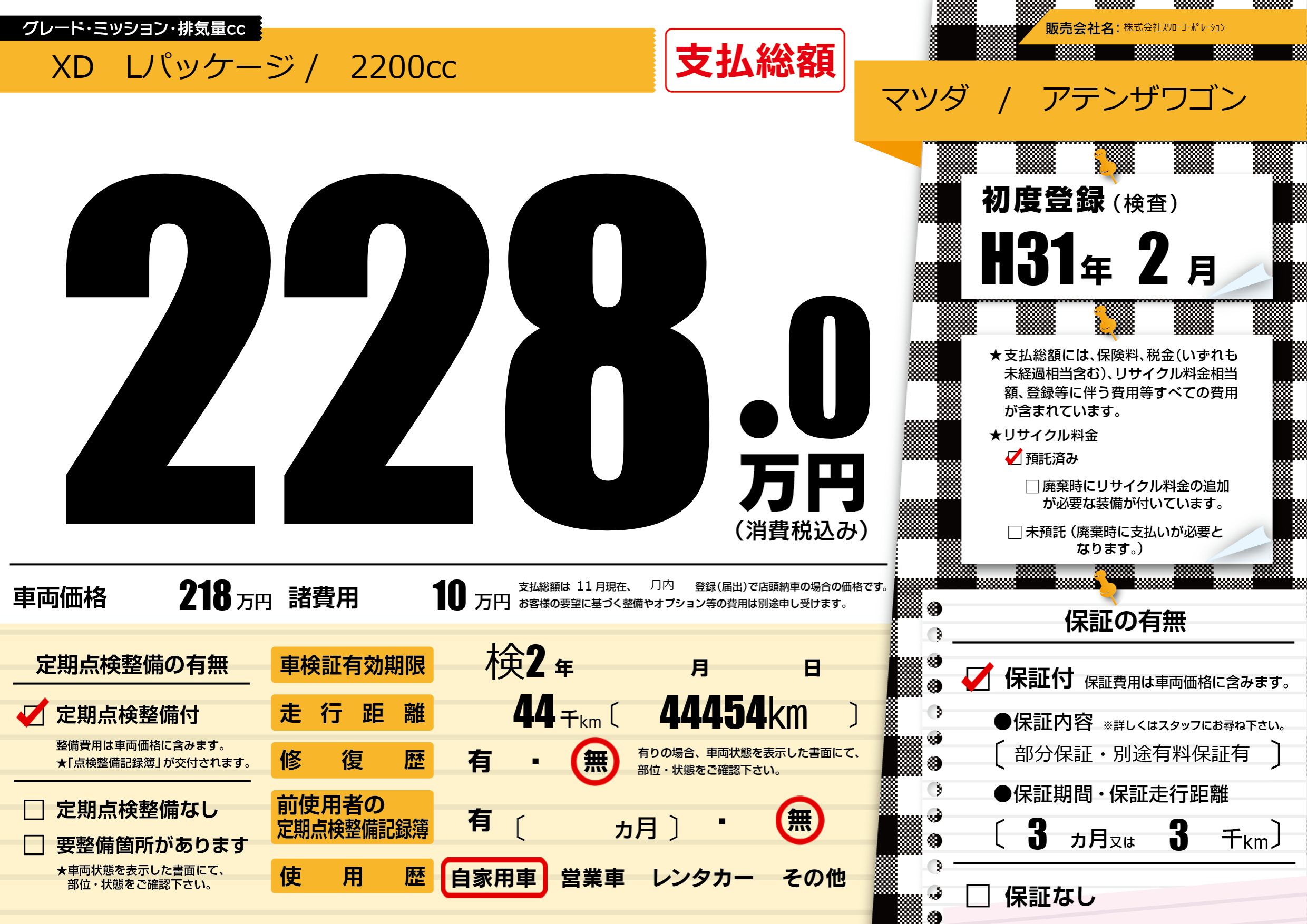 | 定期点検整備 | 定期点検整備あり | ||