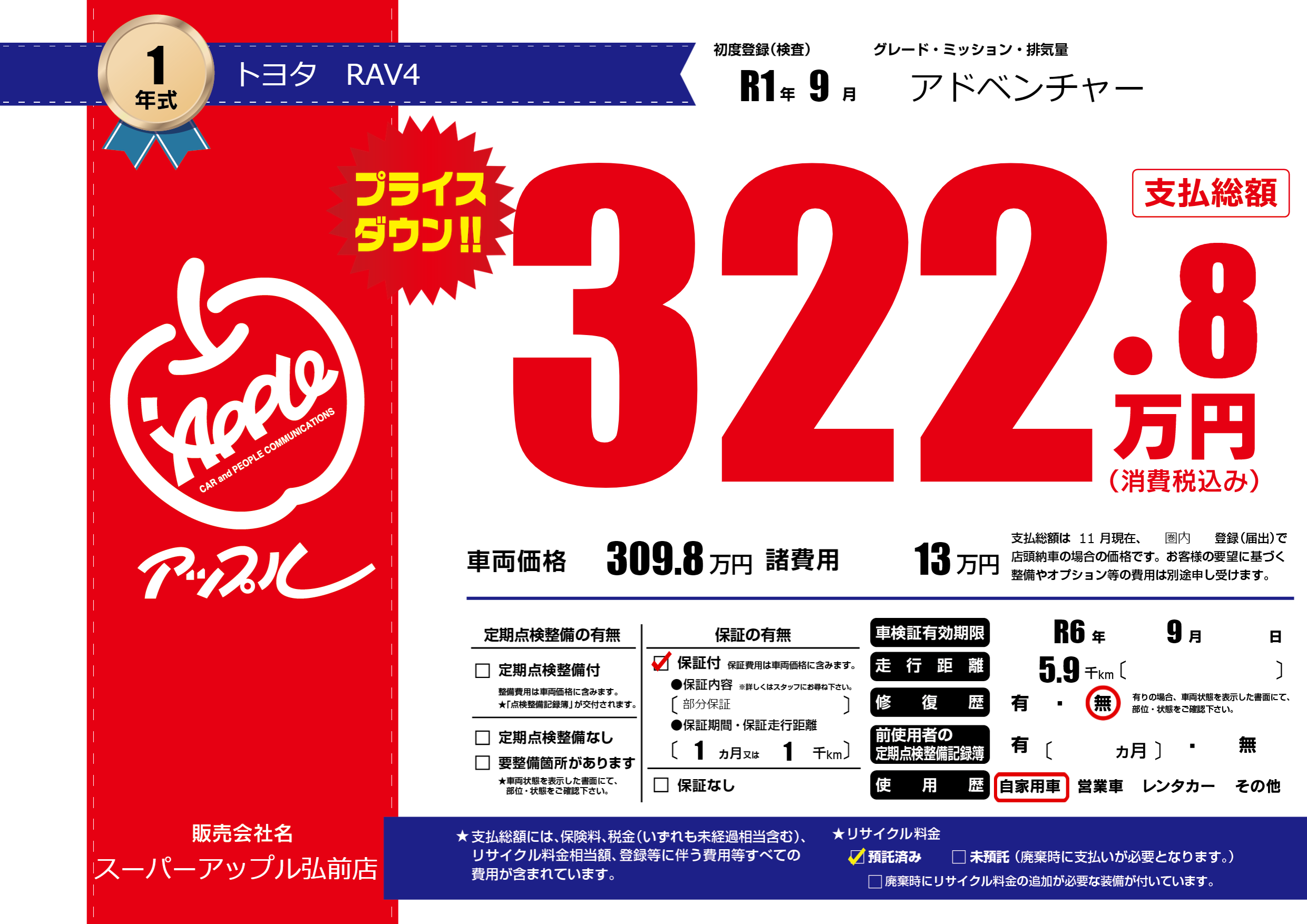 | 車名 | トヨタ RAV4 | グレード ミッション 排気量 |