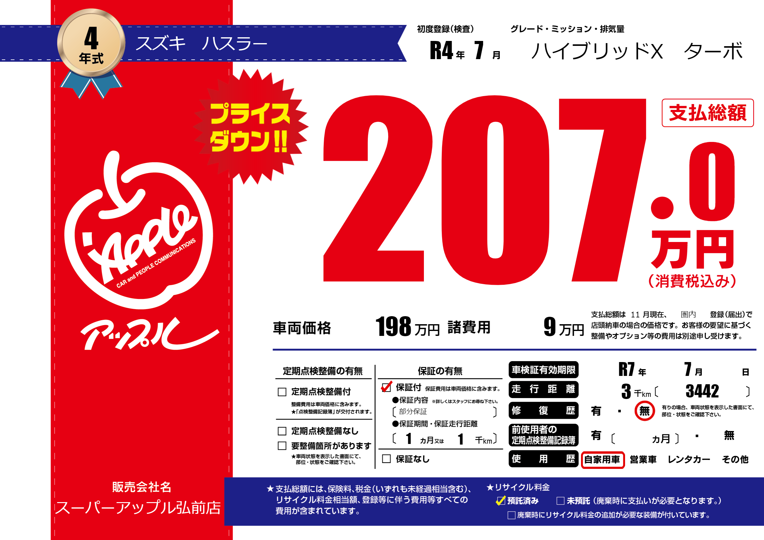 | 車名 | スズキ ハスラー | グレード ミッション 排気量 |