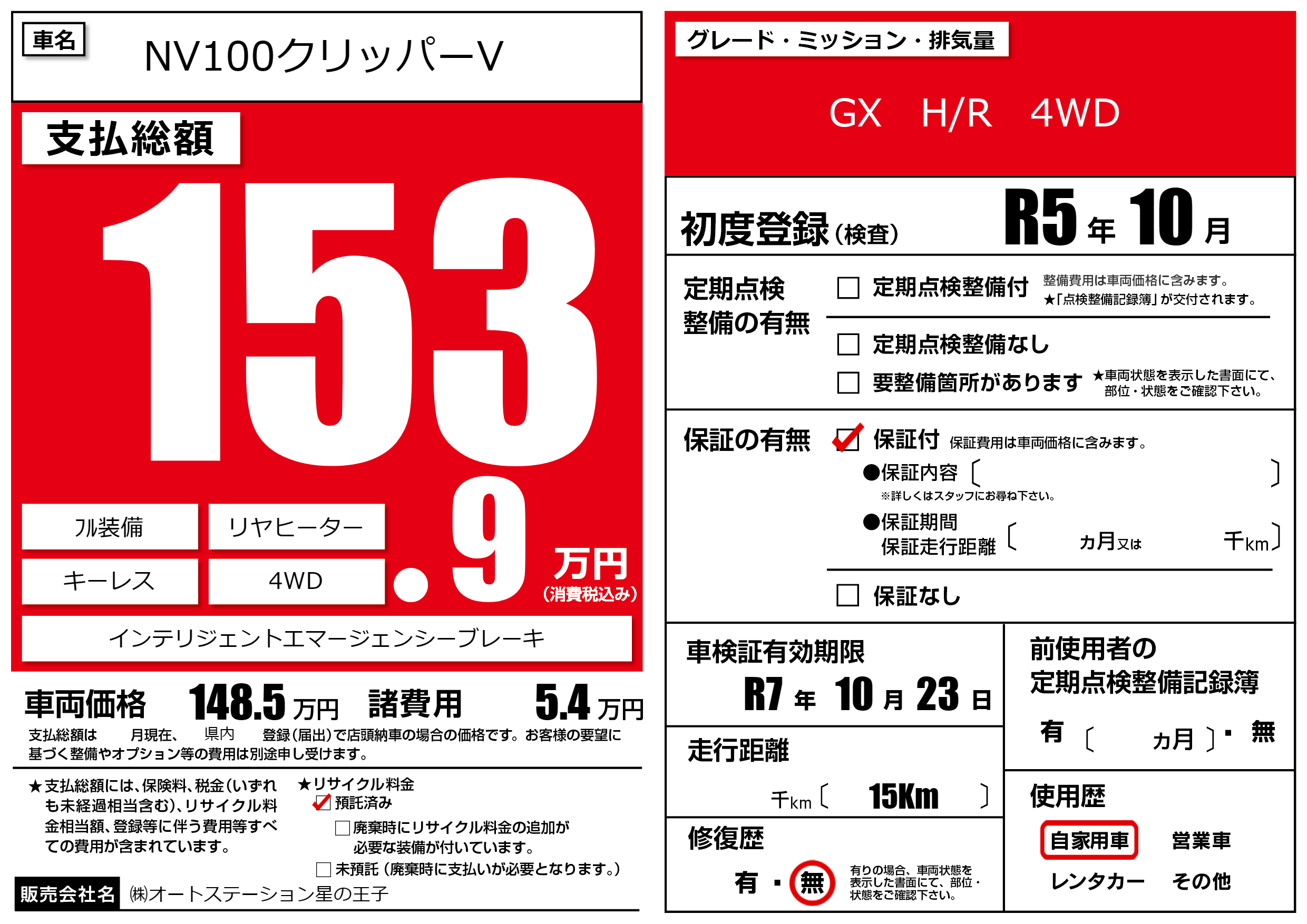 なし | 車検制限 | R7年10月23月 |