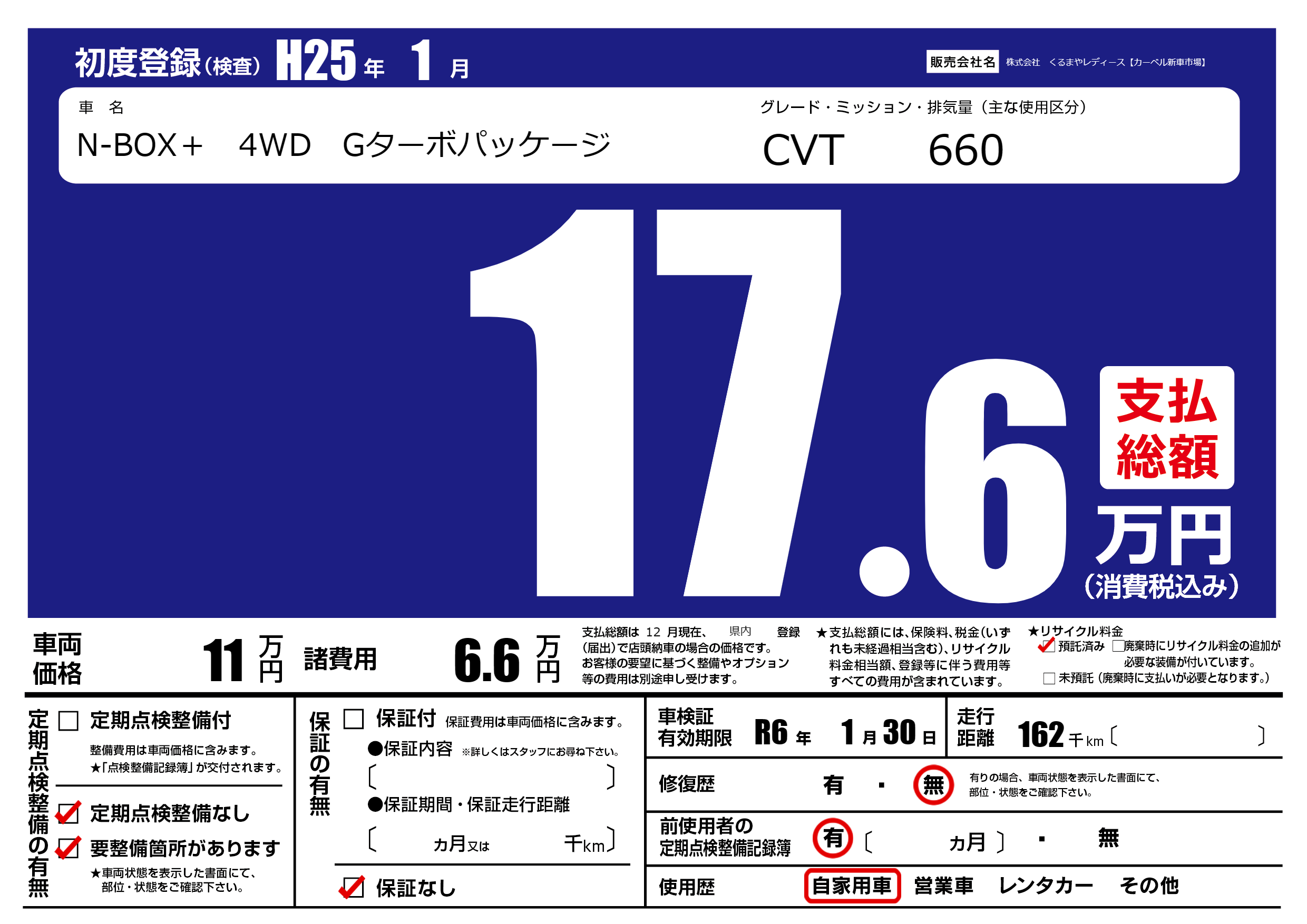 なし | 車検制限 | R6年1月30月 |