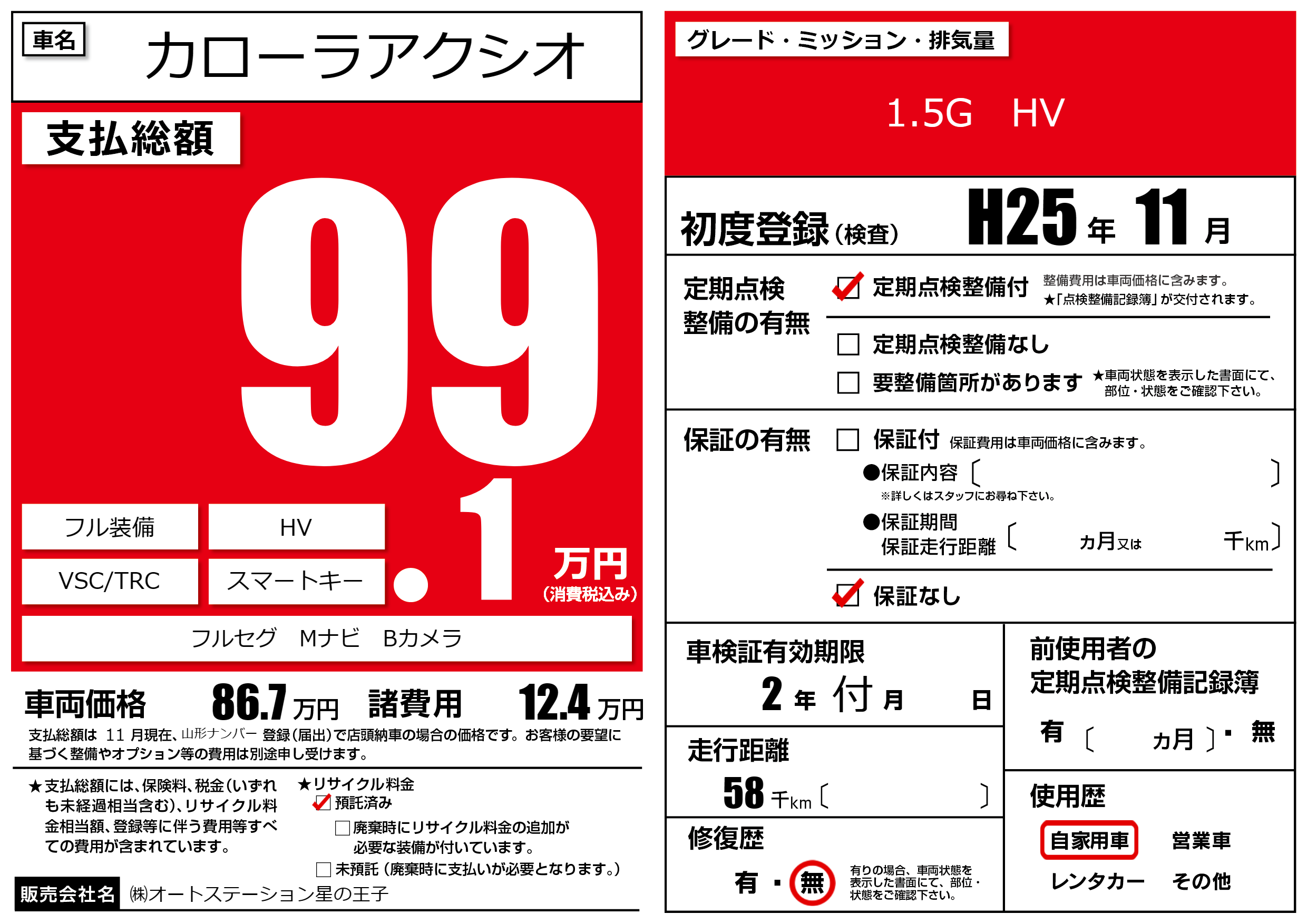 なし | 車検制限 | 2年付月---月 |
