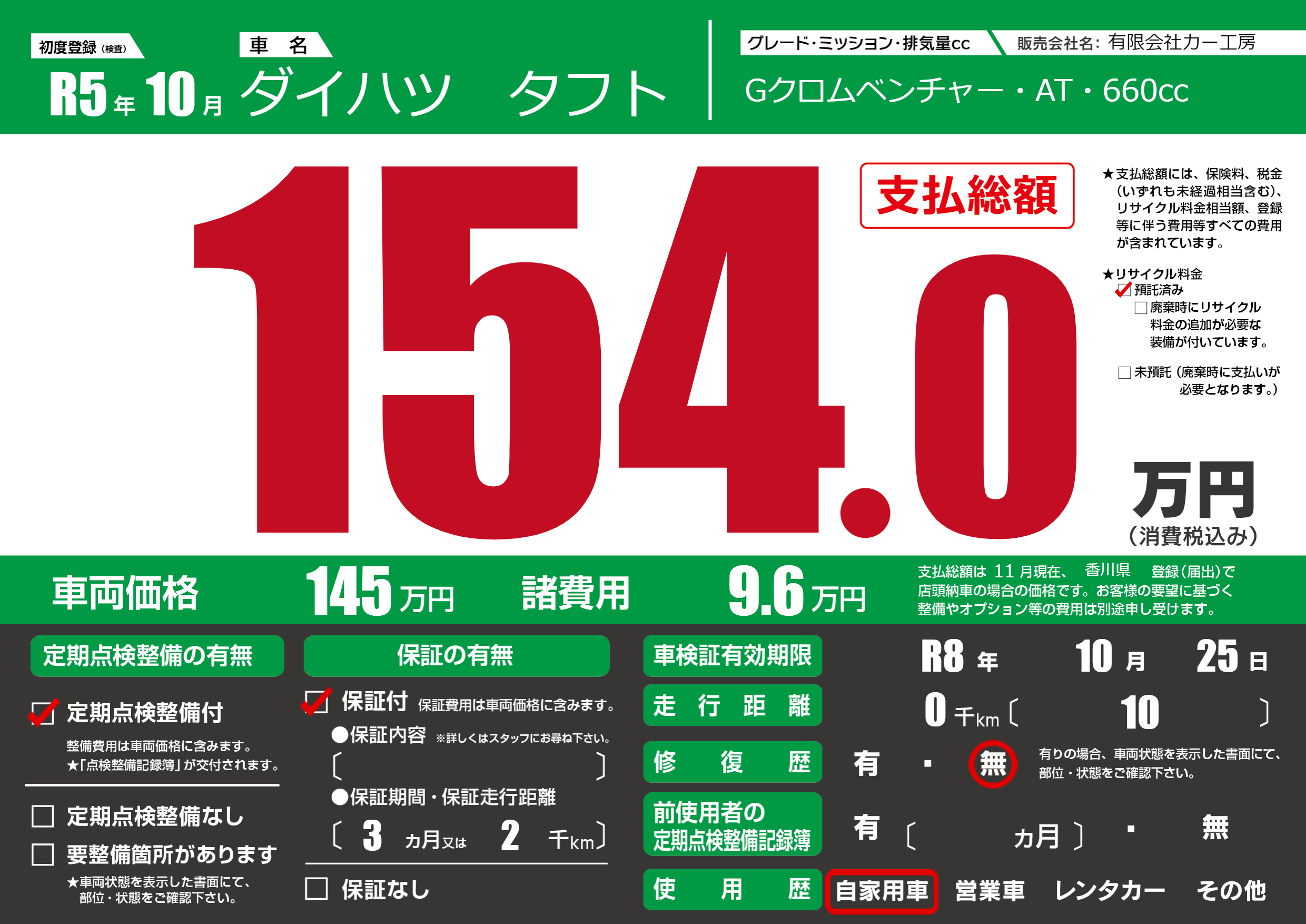 | 走行キロ | - | 初年度登録 | R5年10月 |