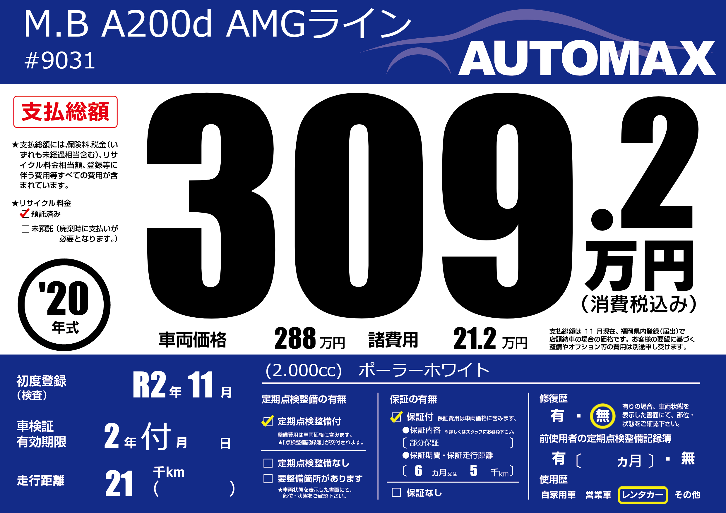 | 定期点検整備 | 定期点検整備あり | ||