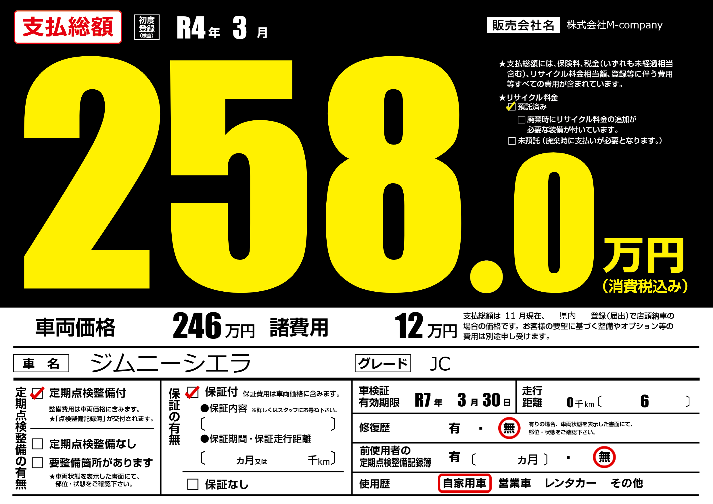 なし | 車検制限 | R7年3月30月 |