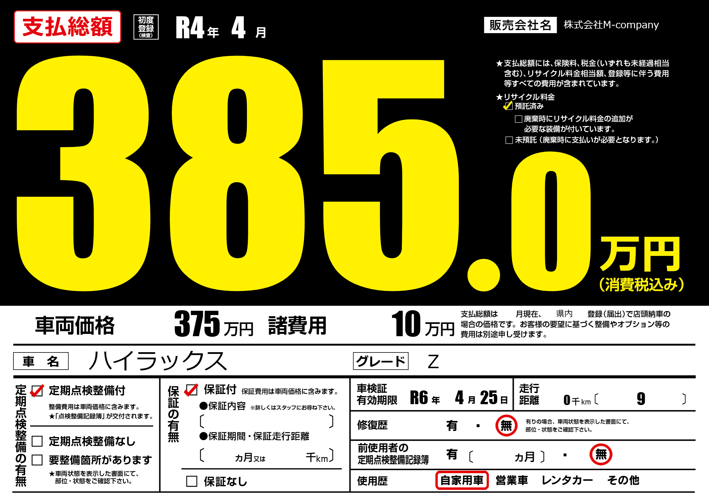 なし | 車検制限 | R6年4月25月 |