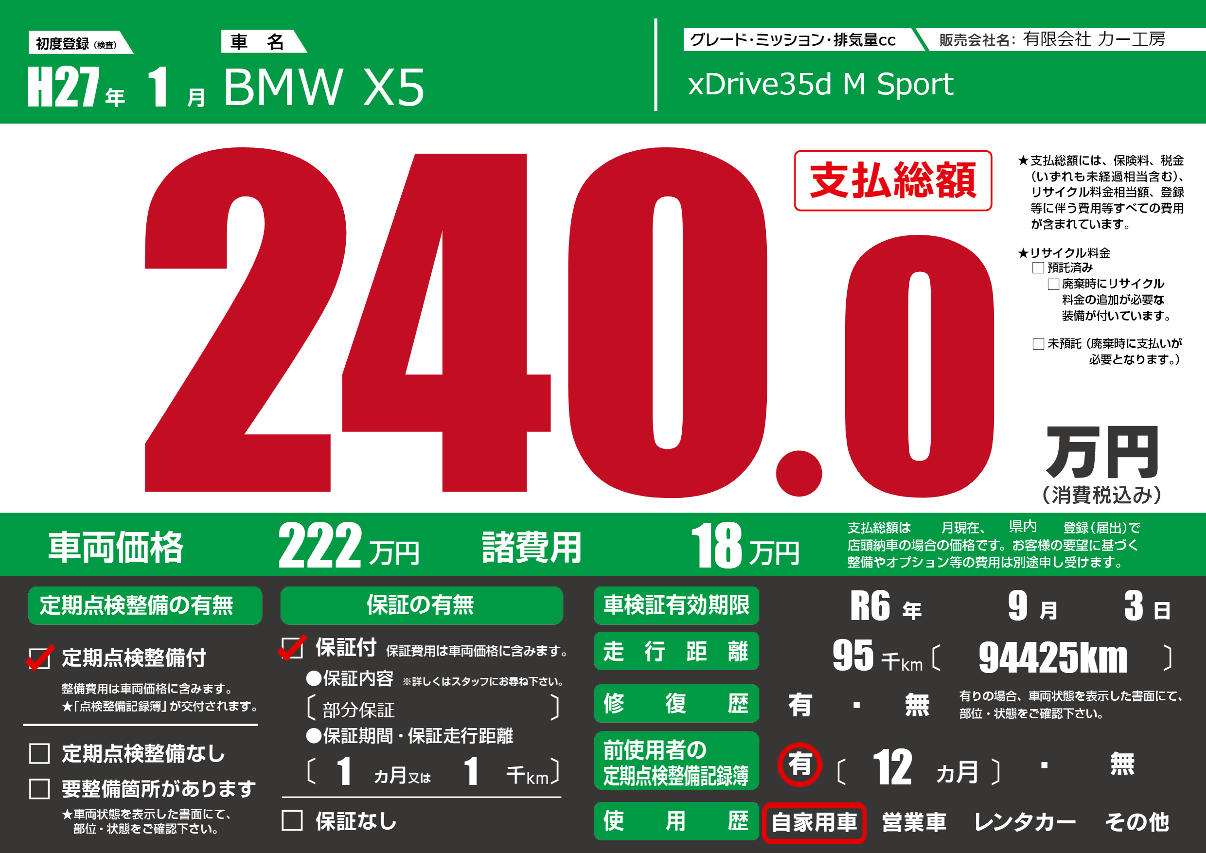 | 車名 | BMW X5 | グレード ミッション 排気量 |