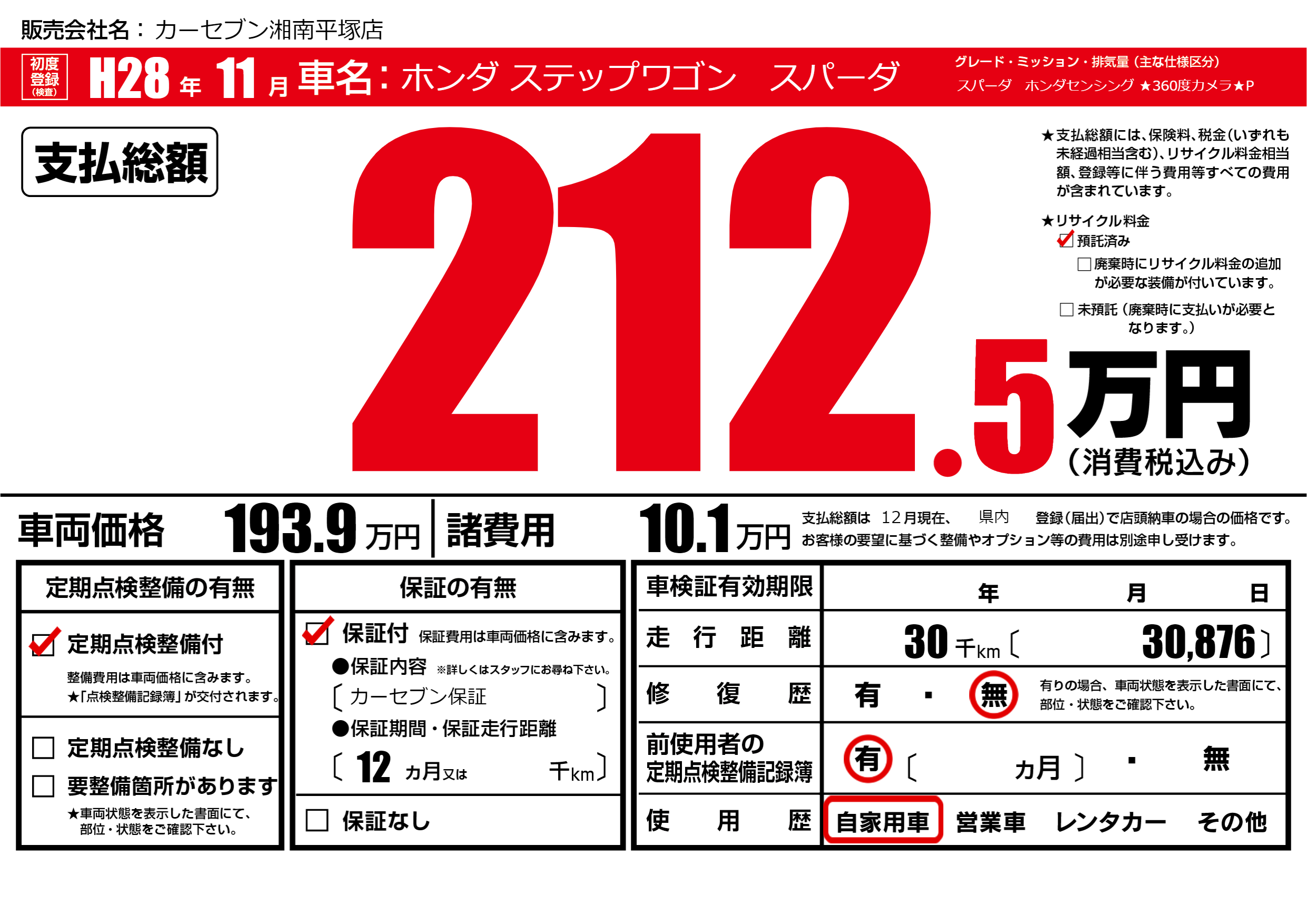 | 走行キロ | 3万km | ||