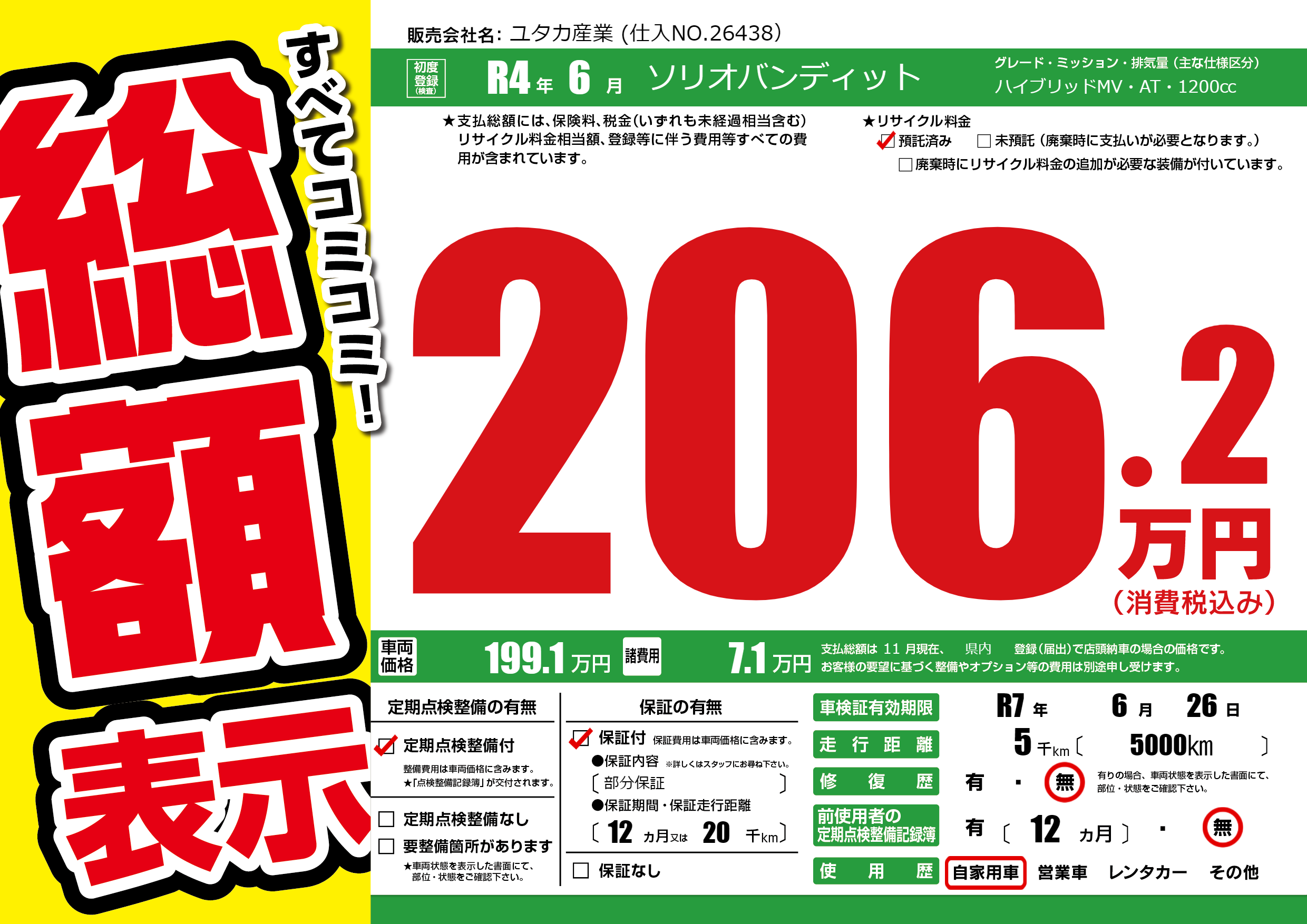 | 車名 | ソリオバンディット | グレード ミッション 排気量 |