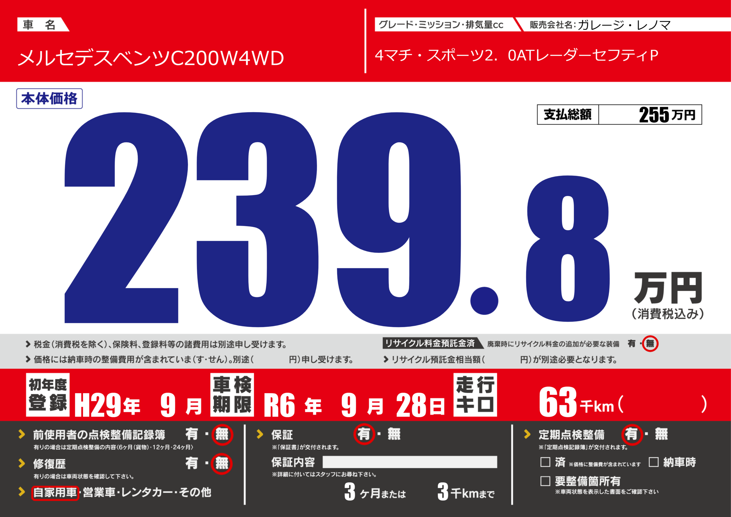なし | 車検制限 | R6年9月28月 |