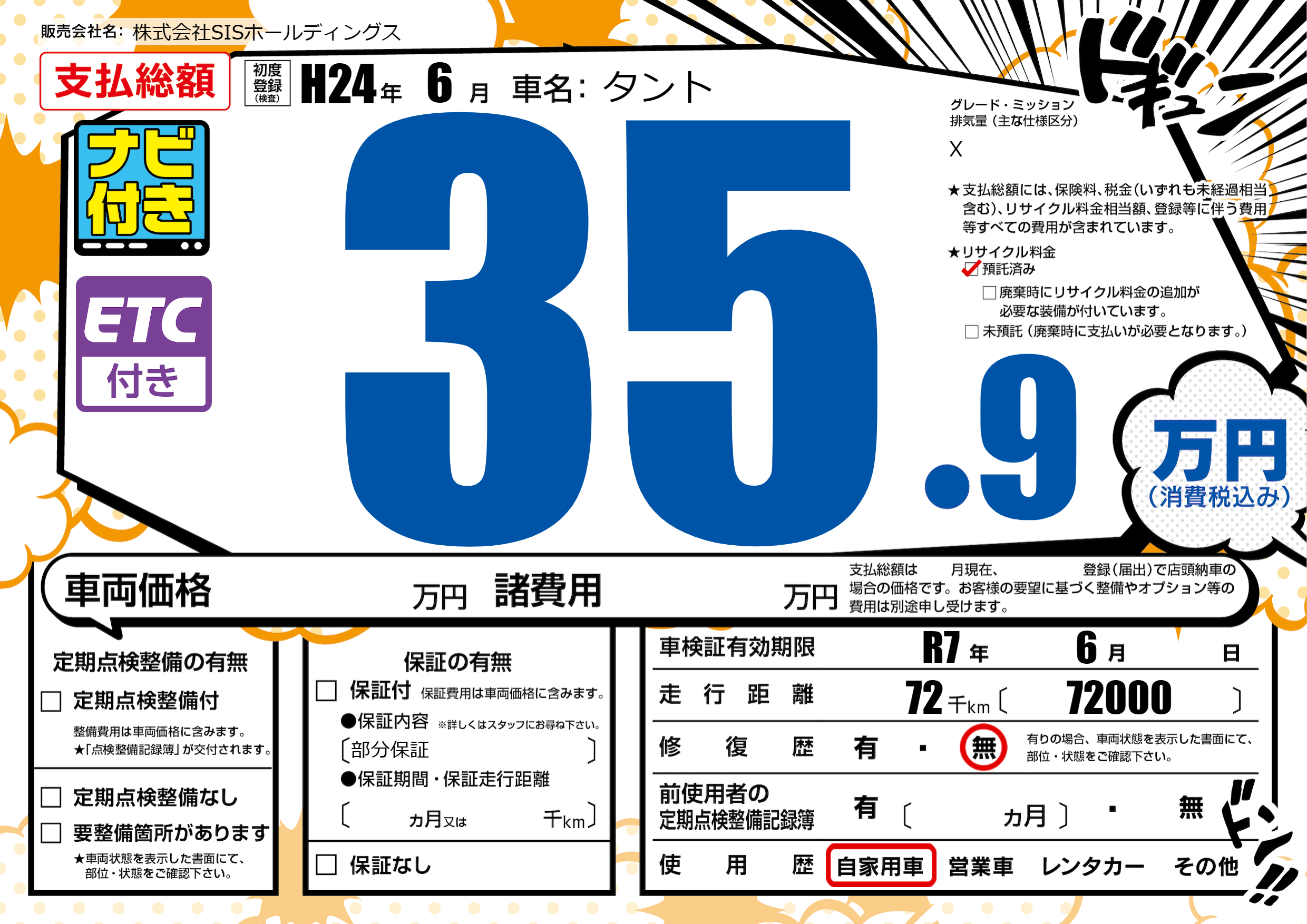 | 走行キロ | 7.2万km | 初年度登録 | H24年6月 |