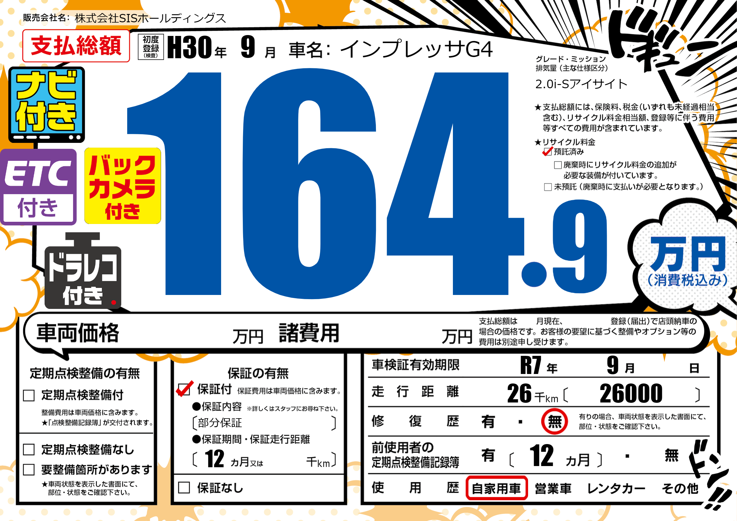 | 車検制限 | R7年 9月 - 日 | ||