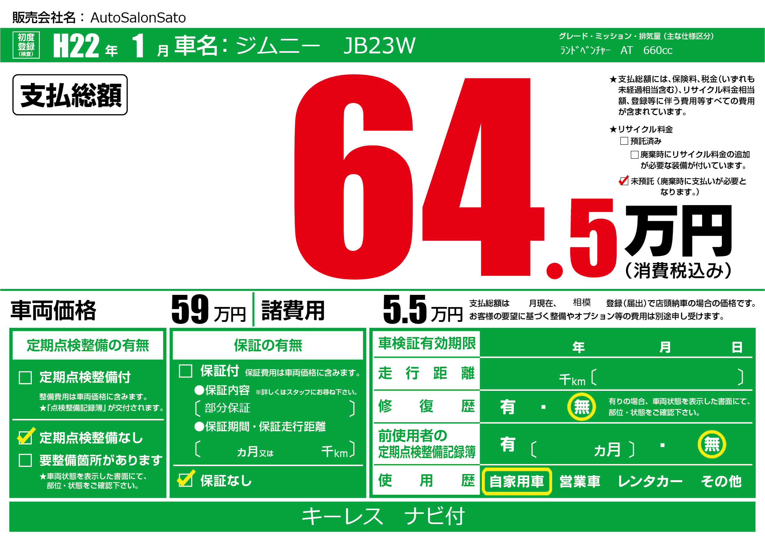 | 車検制限 | - 年 - 月 - 日 | ||