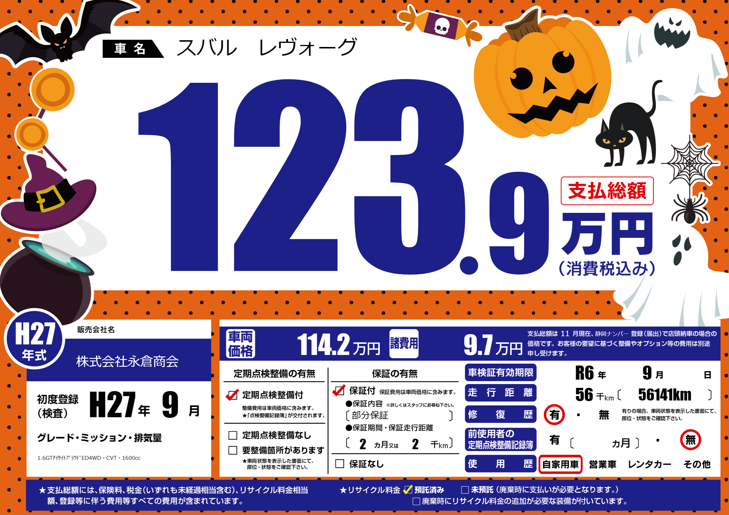 | 走行キロ | 5.6万km | 初年度登録 | H27年9月 |