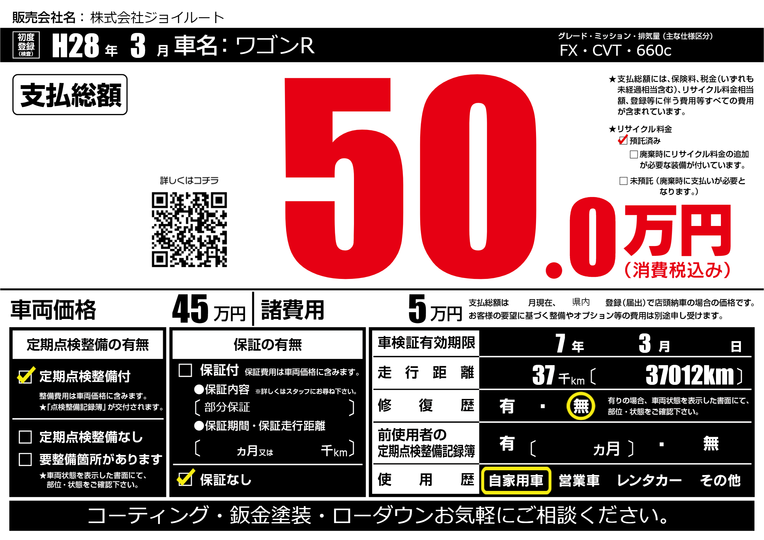 | 車名 | ワゴンR | グレード ミッション 排気量 |