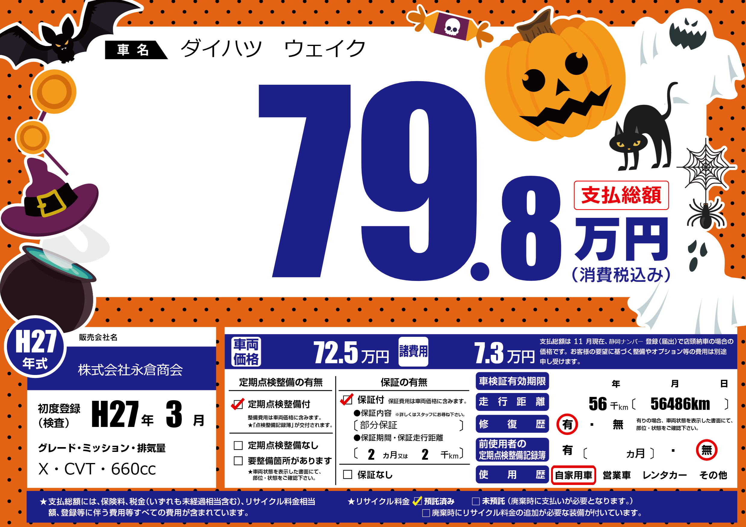 | 走行キロ | 5.6万km | 初年度登録 | H27年3月 |