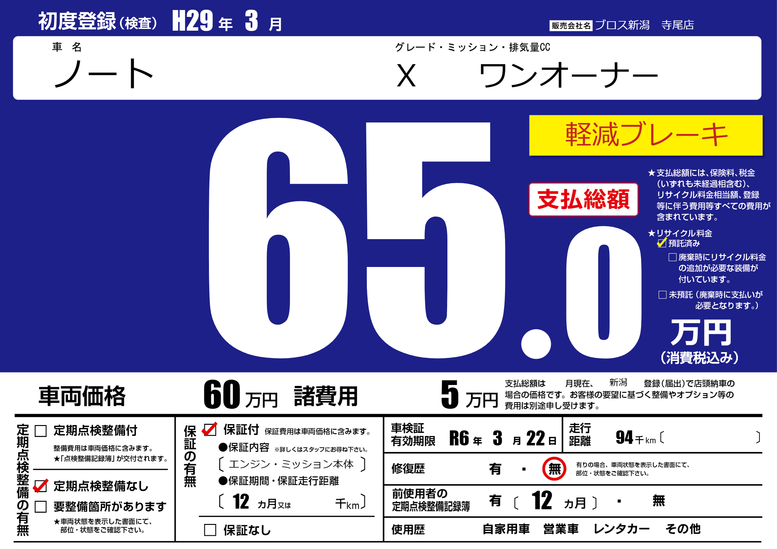 | 走行キロ | 9.4万km | 初年度登録 | H29年3月 |