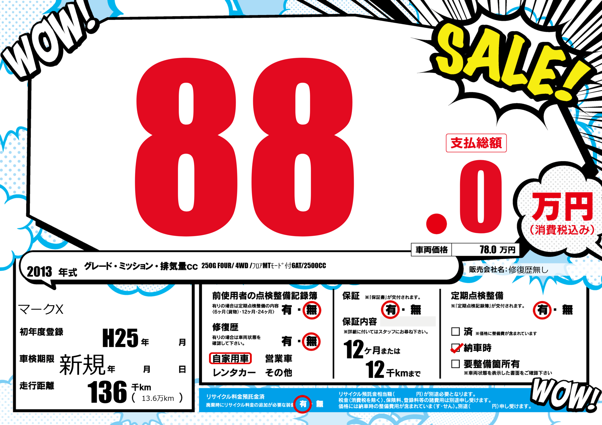 | 定期点検整備 | 定期点検整備あり 納車時あり | ||
