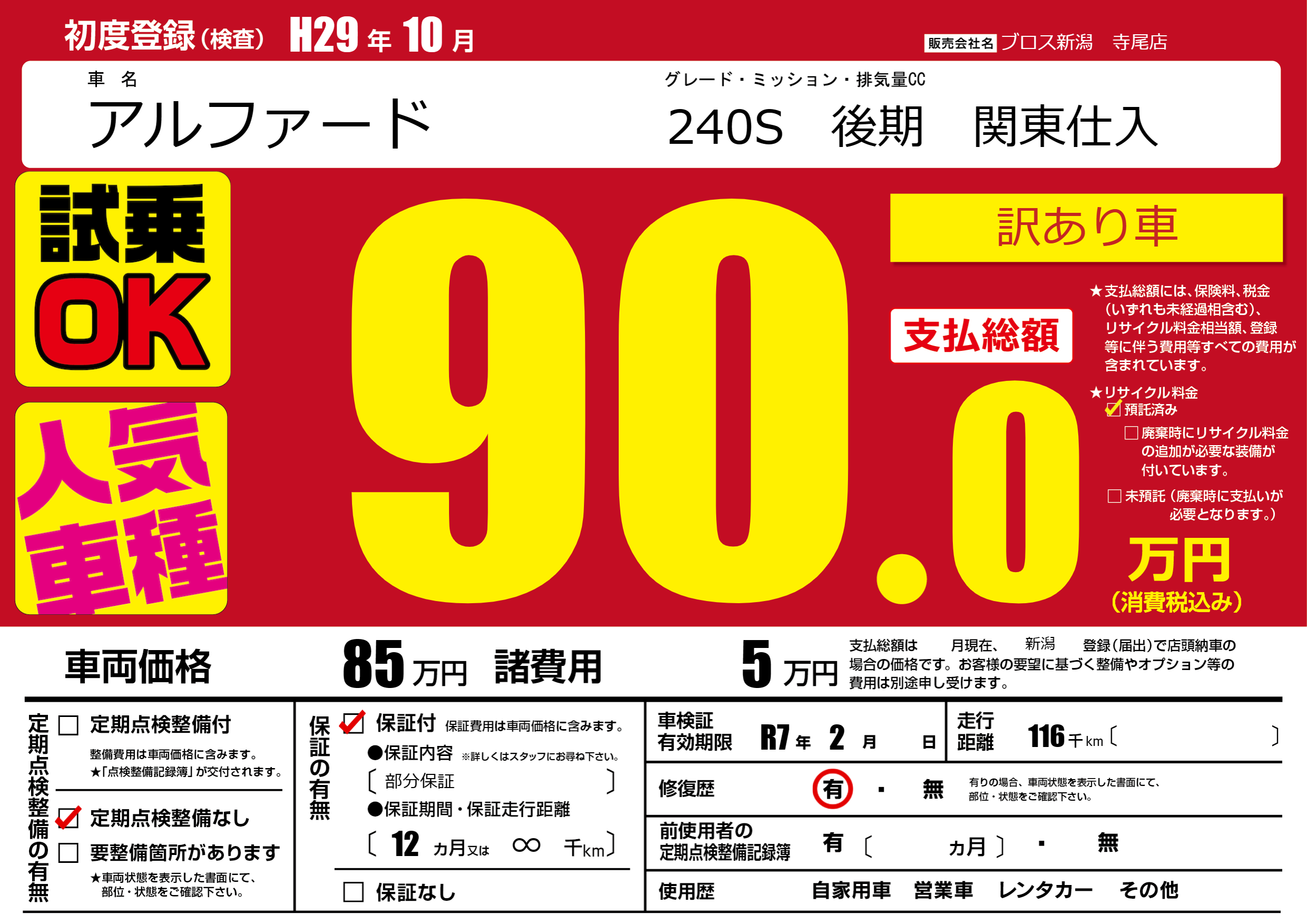 | 走行キロ | 11.6万km | ||
