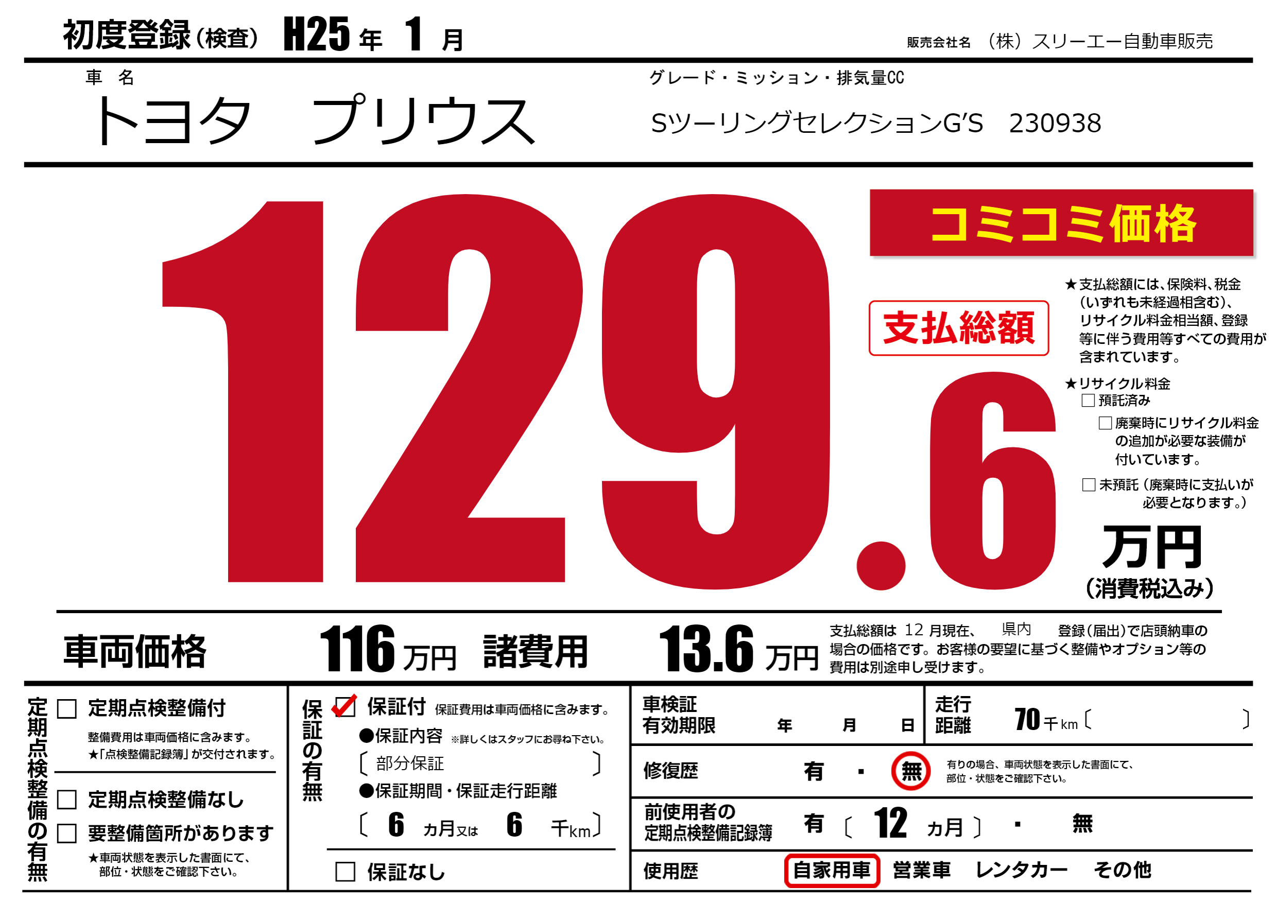 保証付き 保証内容(部分保証) 6ヶ月または(6)千kmまで |