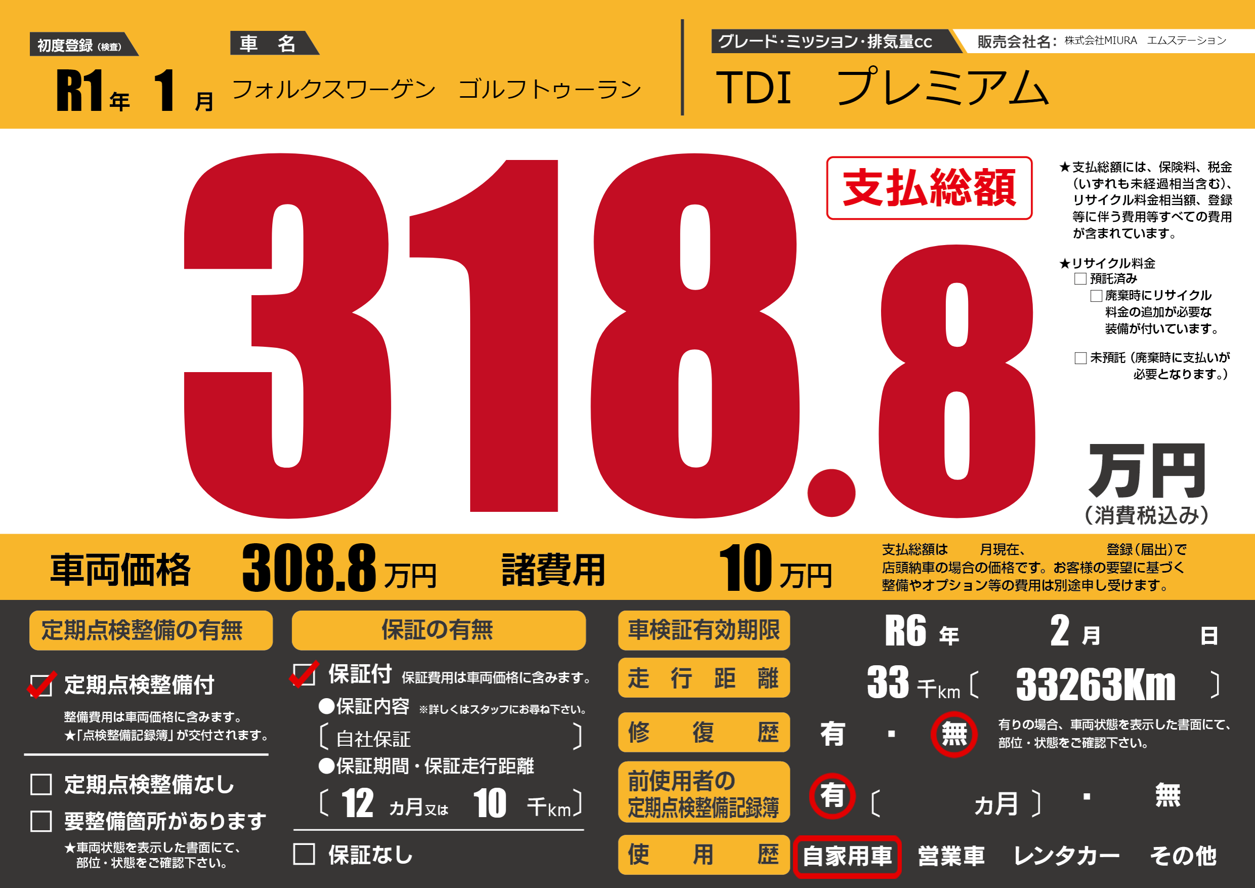 | 定期点検整備 | 定期点検整備あり | ||